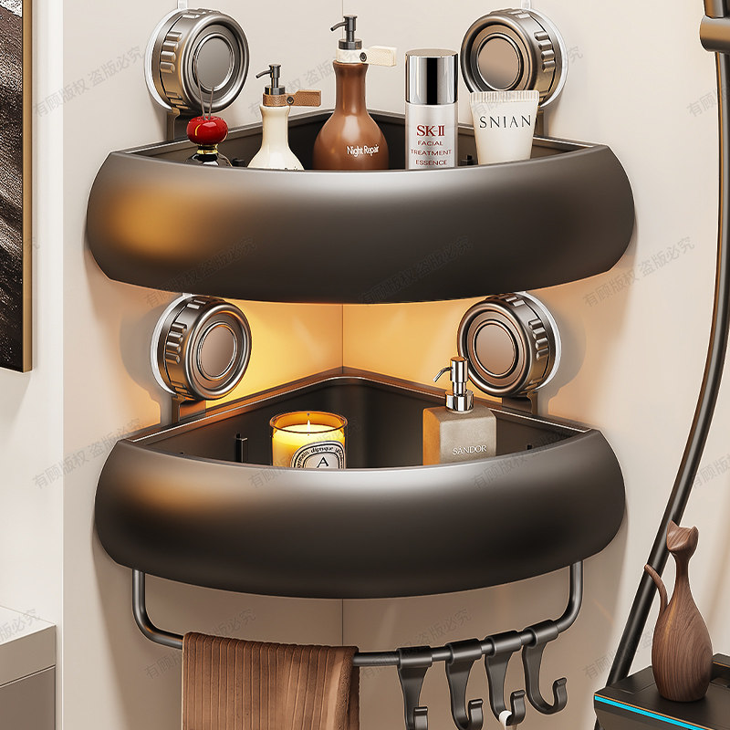 卫生间置物架壁挂式洗手间吸盘三角篮收纳架浴室三角墙角架太空铝