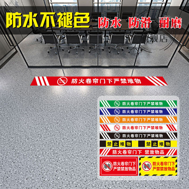 防火卷帘门下严禁堆物消防标识贴严禁禁止堆放物品安全提示牌消防卷闸门禁止摆放物品警示胶带磨砂地贴贴纸