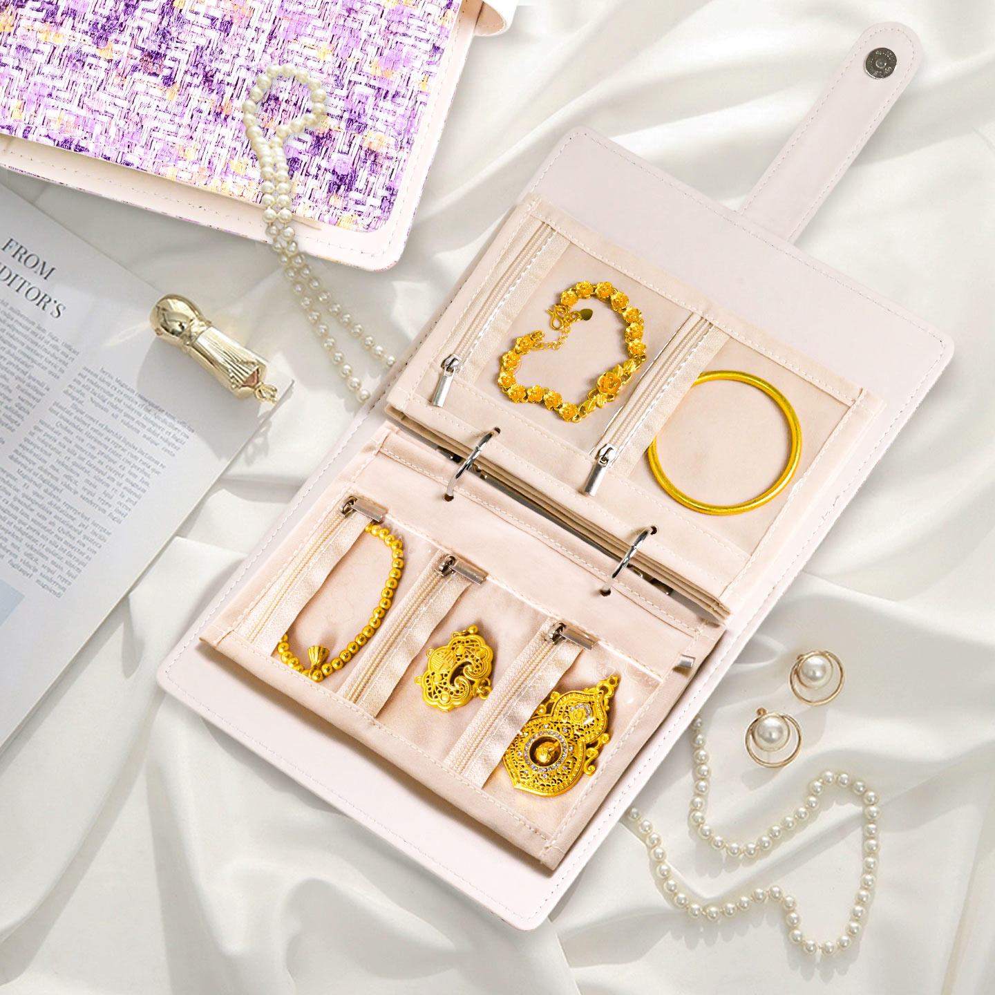 小香风首饰收纳包饰品专用黄金手饰收纳册书2026新款旅行便携收纳本耳环项链手链手镯戒指包密封袋珠宝便携式