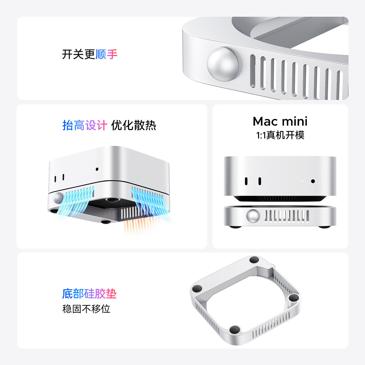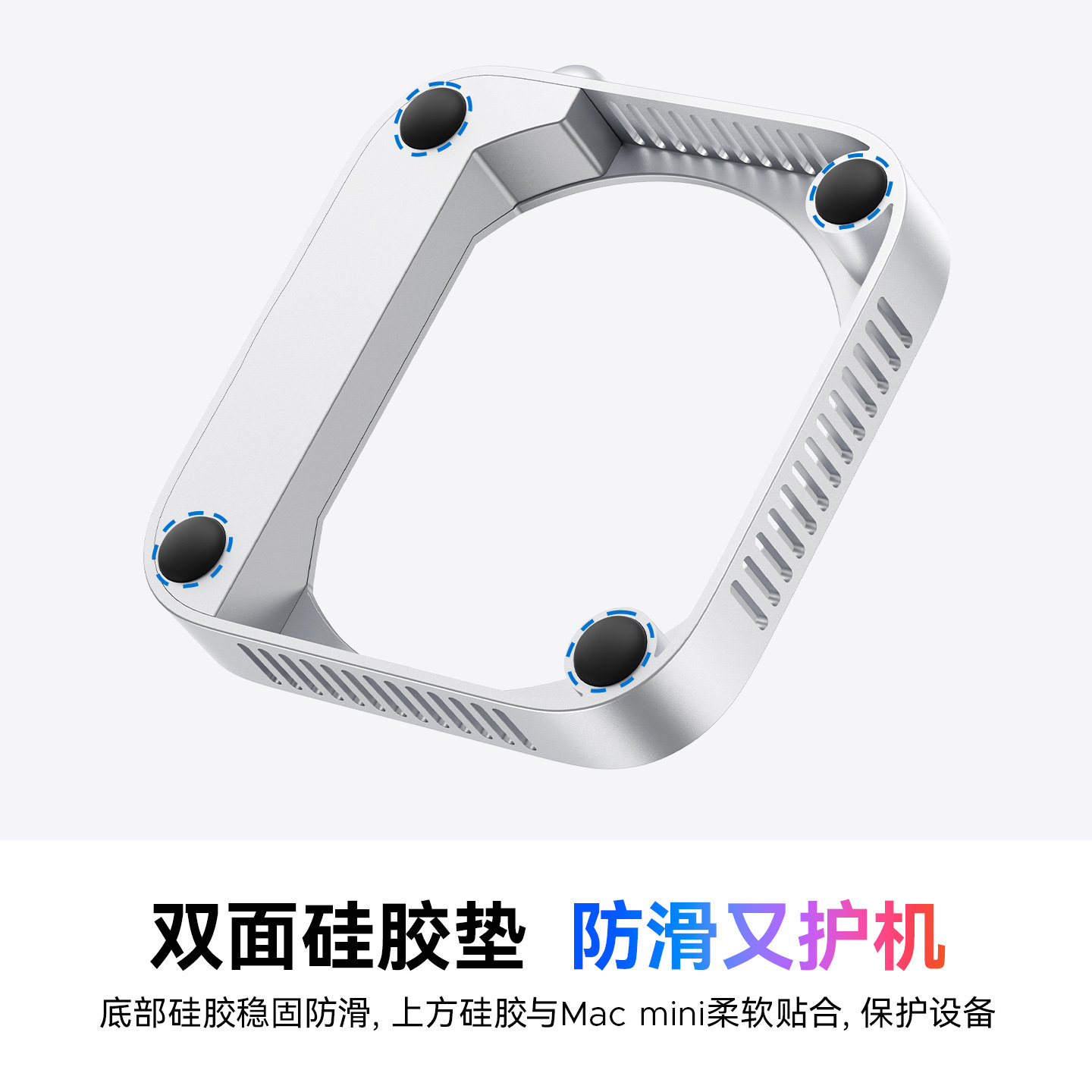 奥睿科适用于macmini支架底座M4/M4Pro苹果迷你电脑主机配件桌面支撑架散热托架铝合金金属防尘增高垫子