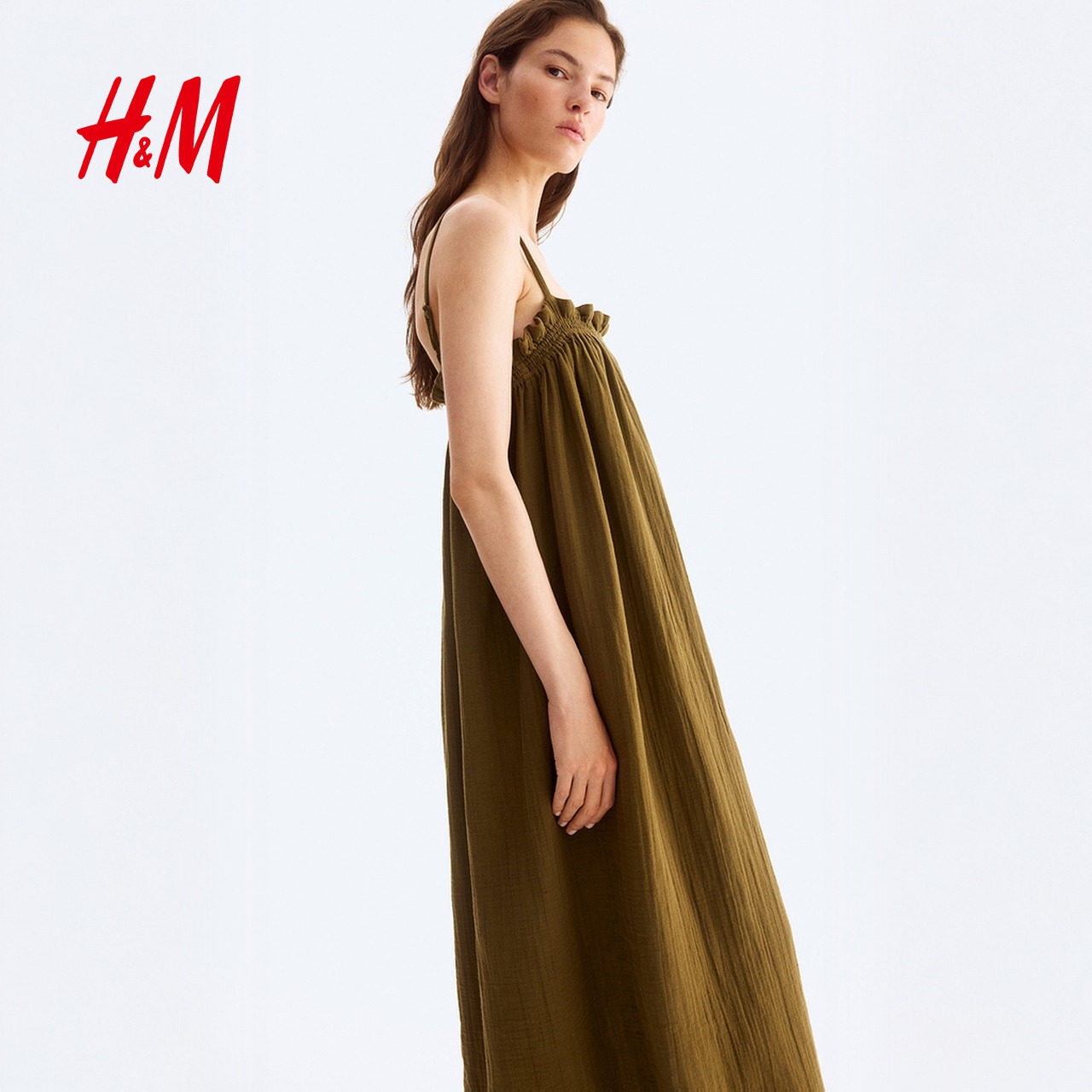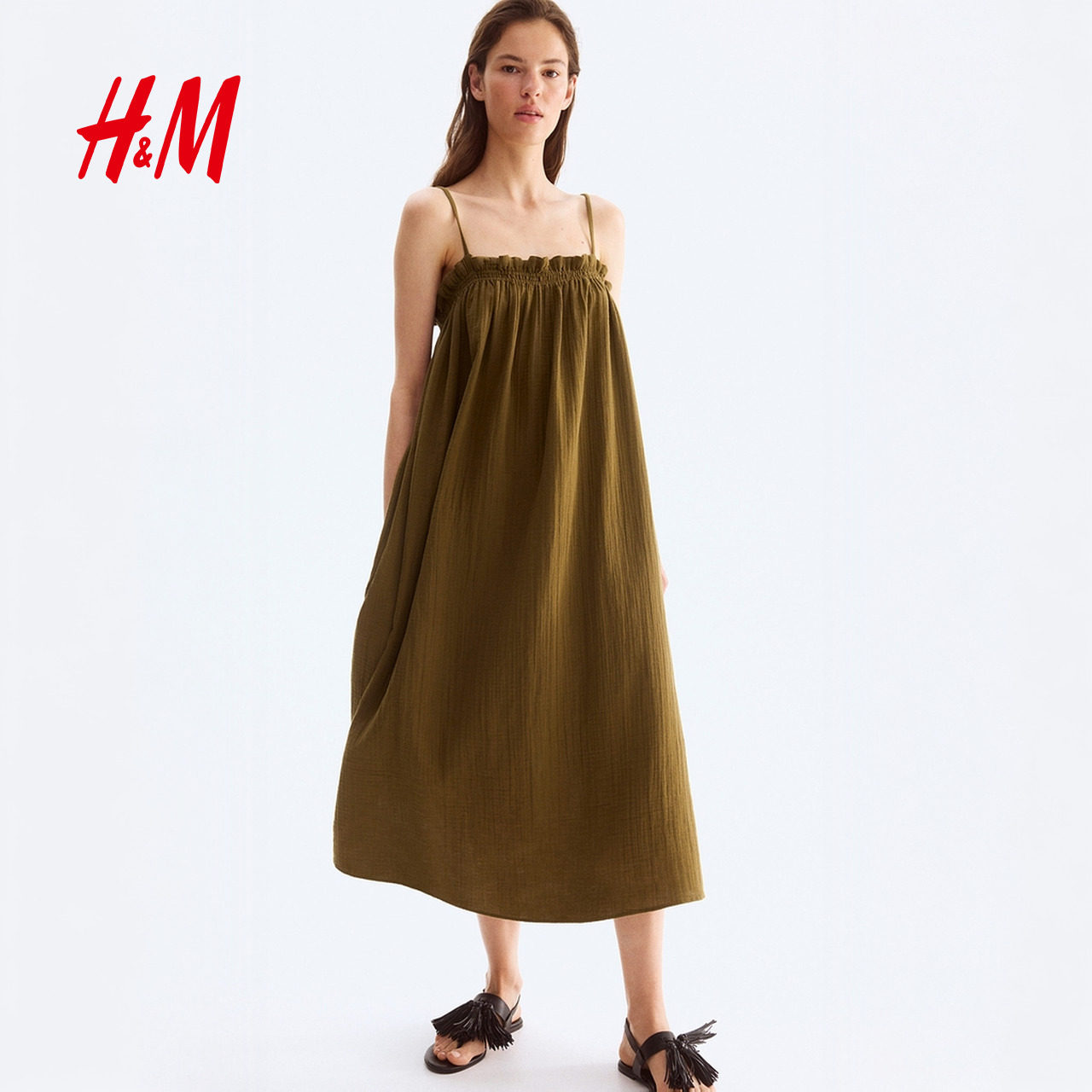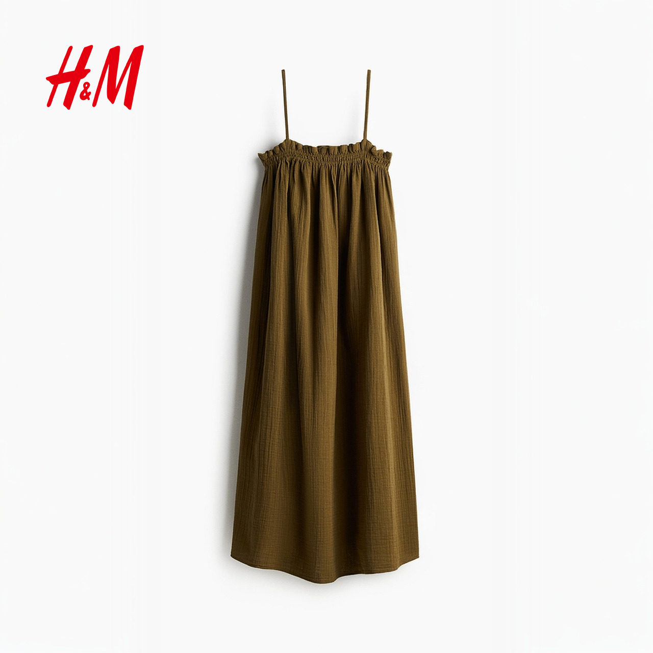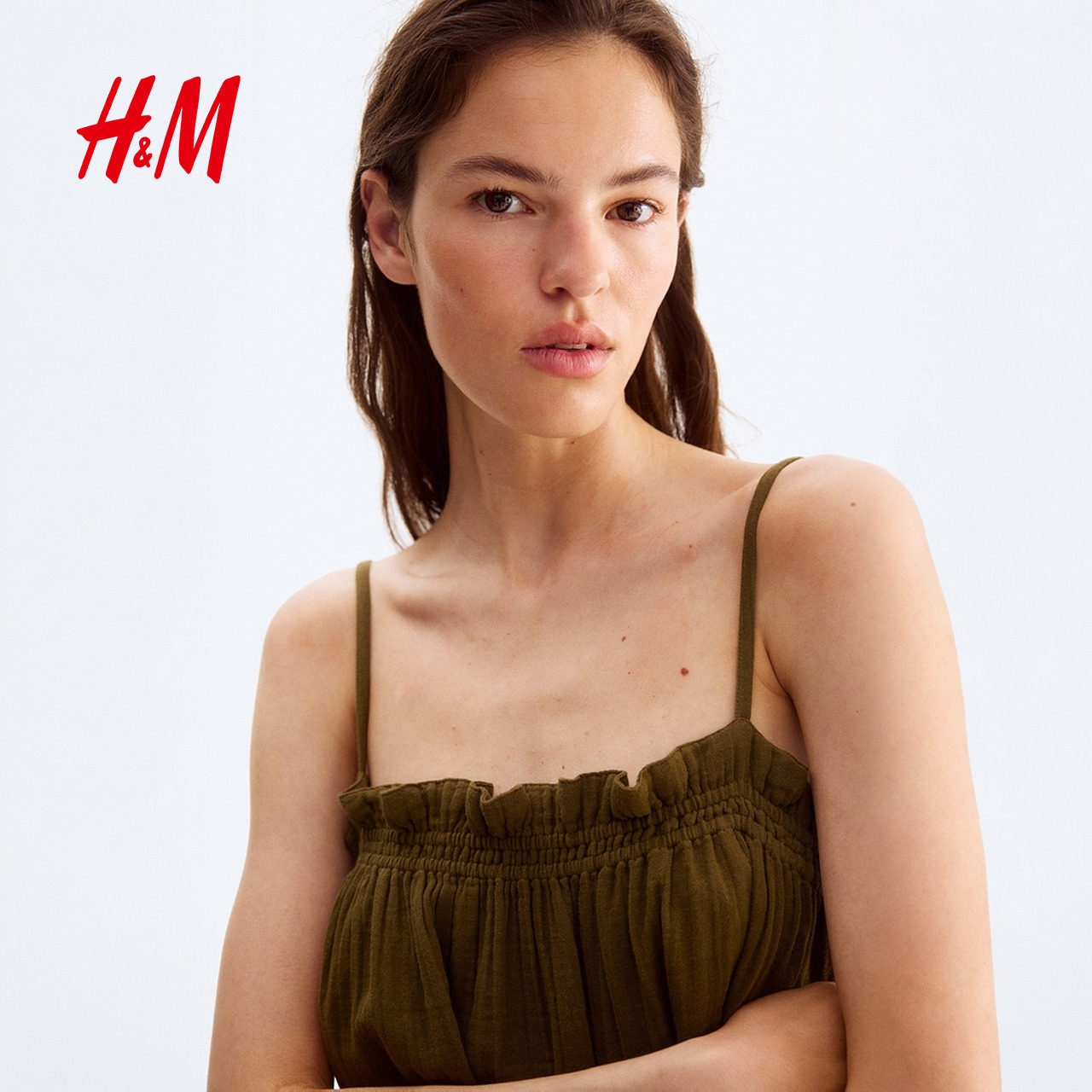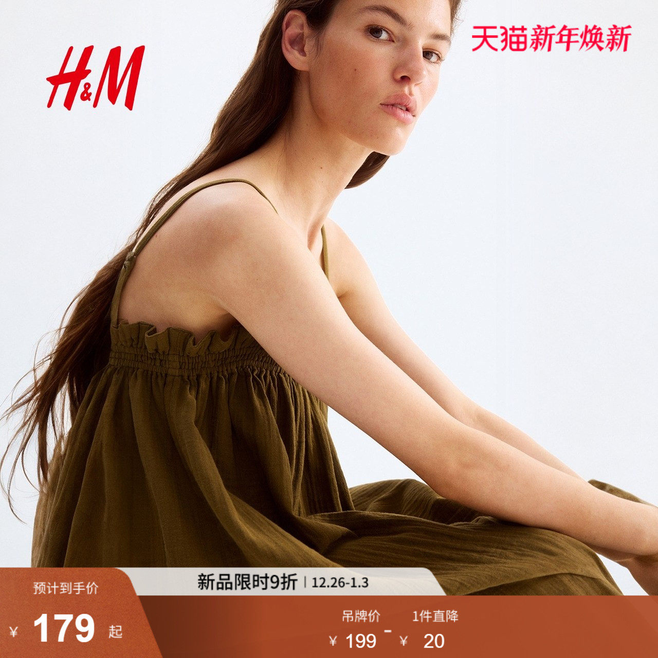 HM女装无领背心吊带连衣裙2025冬季新款无袖平纹细布裙1289919