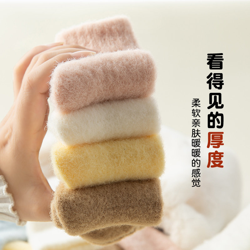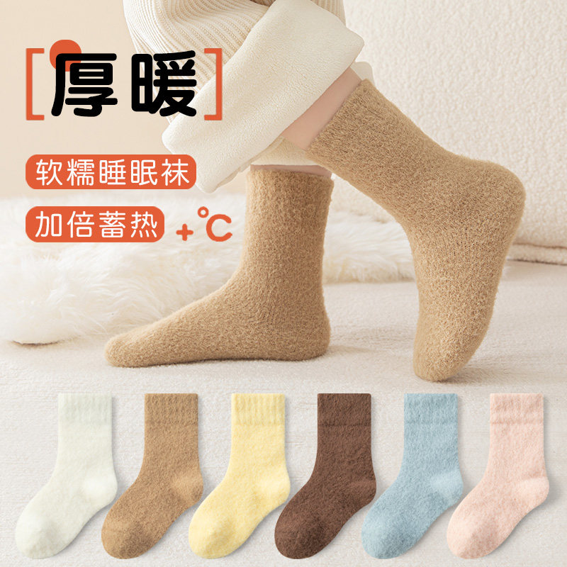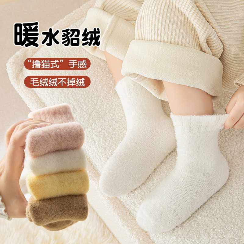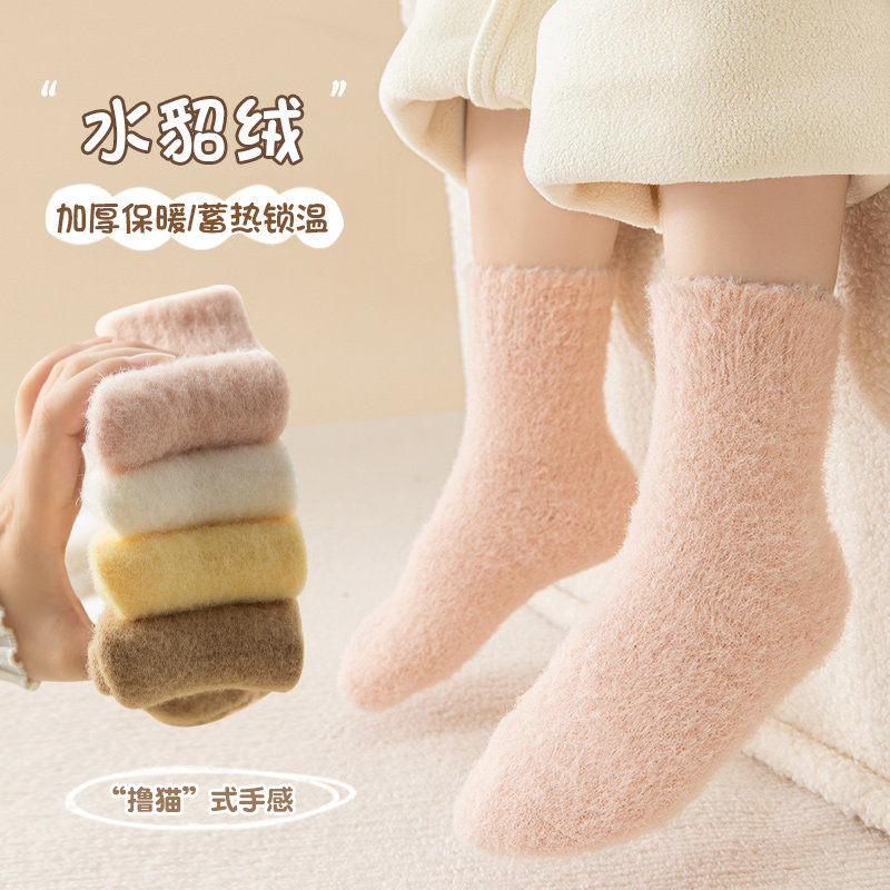 儿童袜子冬季加绒加厚水貂绒珊瑚绒中筒女童秋冬款宝宝保暖毛巾袜