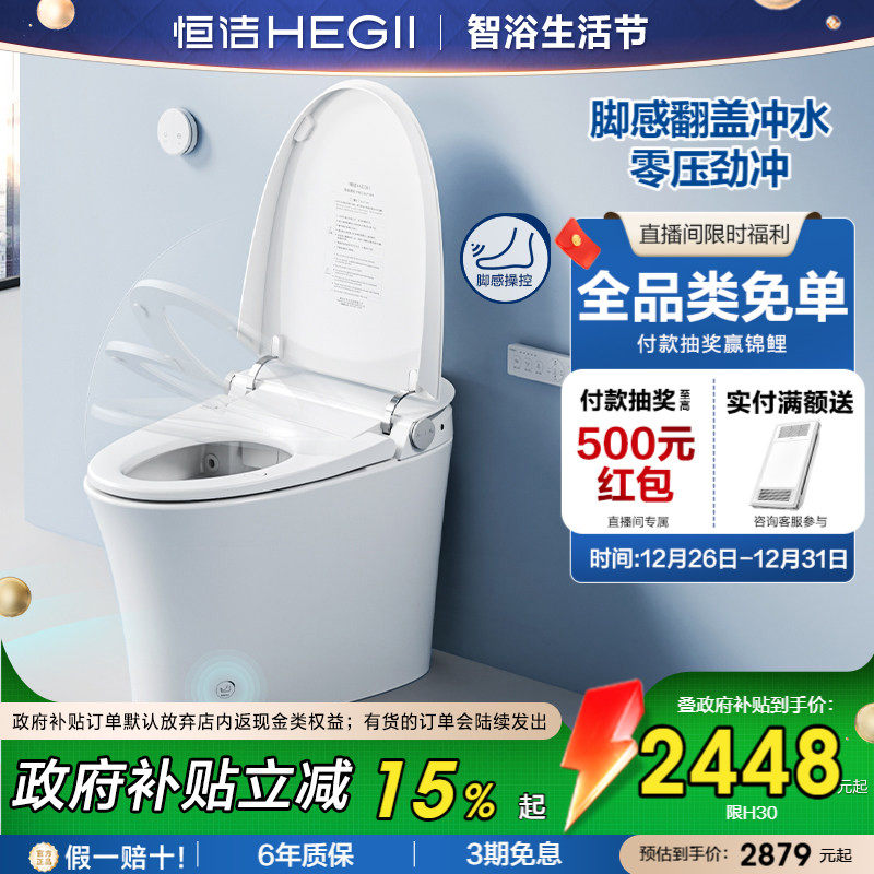 恒洁卫浴智能马桶全自动一体式坐便器脚感翻盖冲水小户家用H30pro