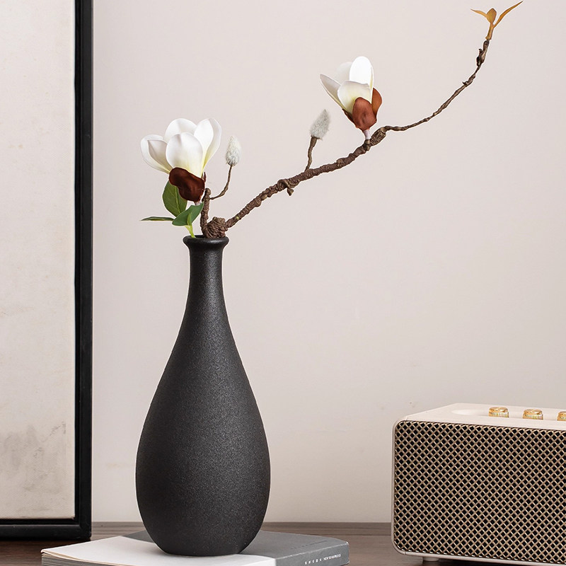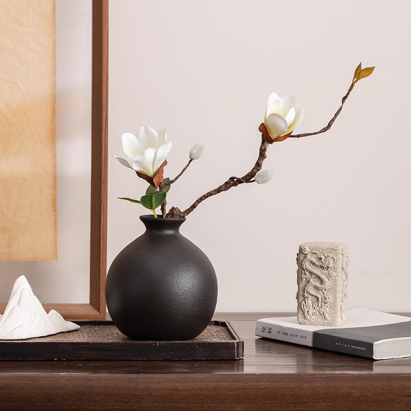 高级感复古黑色陶瓷小花瓶客厅干花装饰摆件插花电视柜博古架卧室
