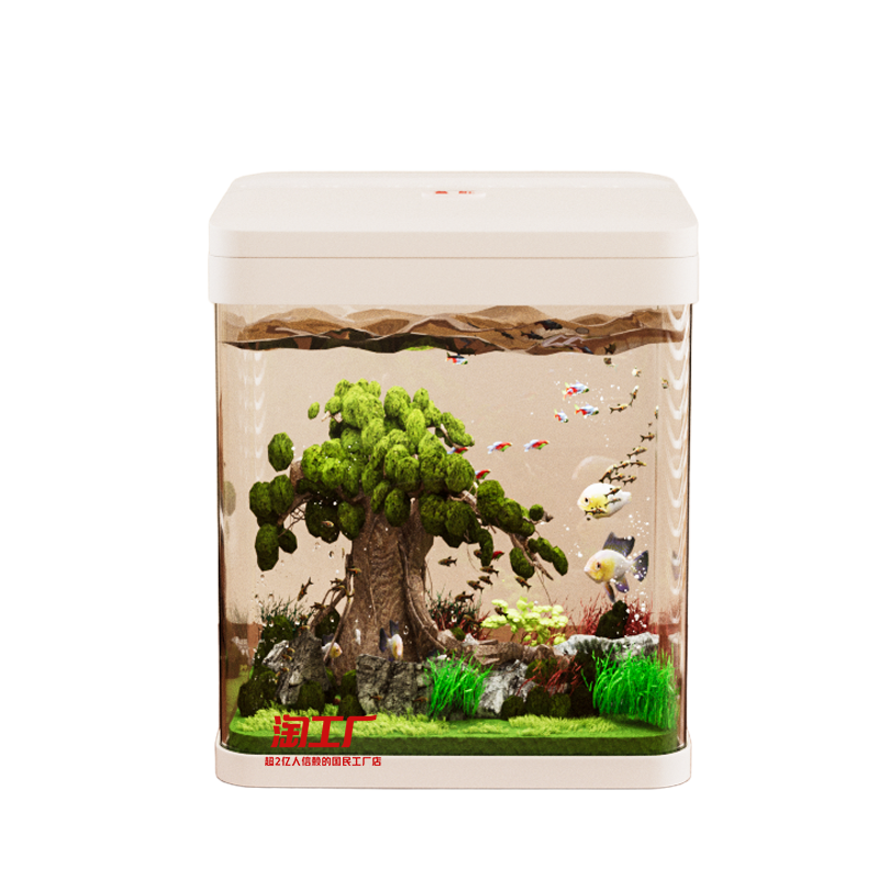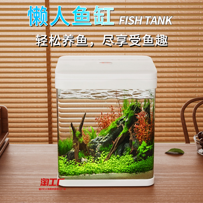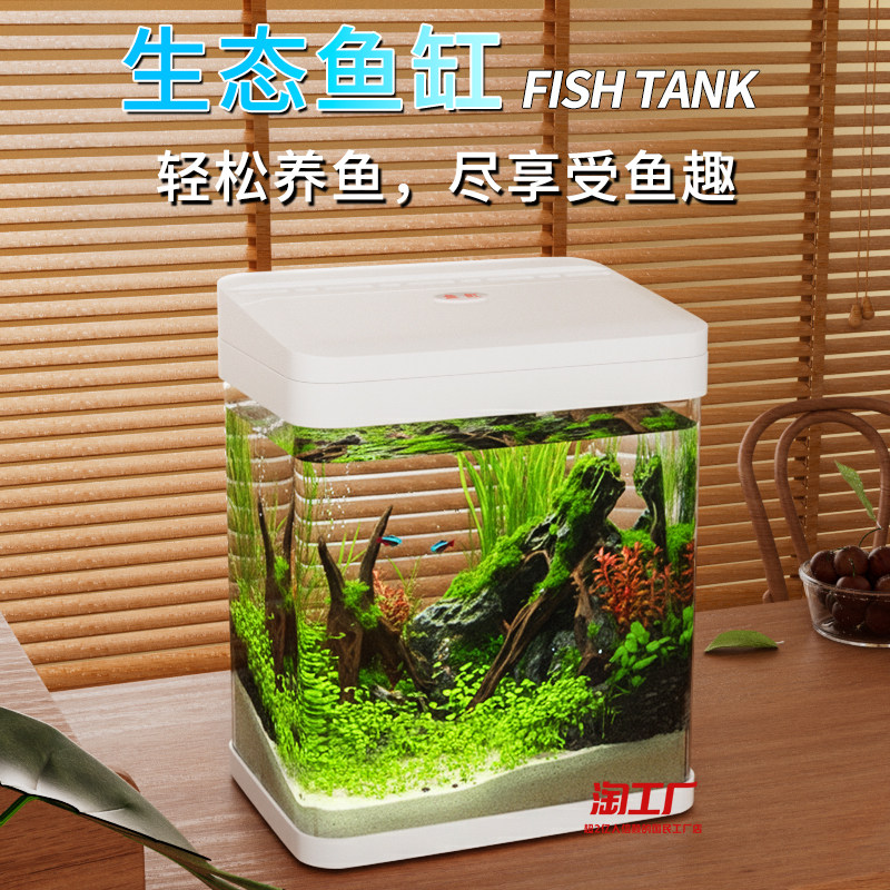 桌面小型鱼缸透明新款客厅办公室造景缸仿玻璃防摔生态缸增氧净水