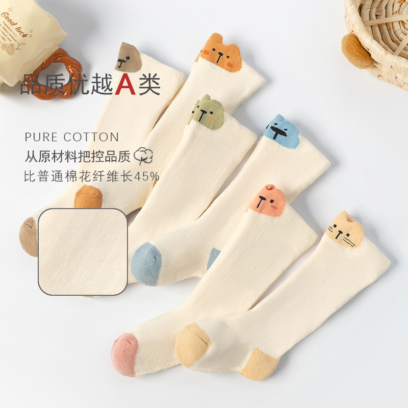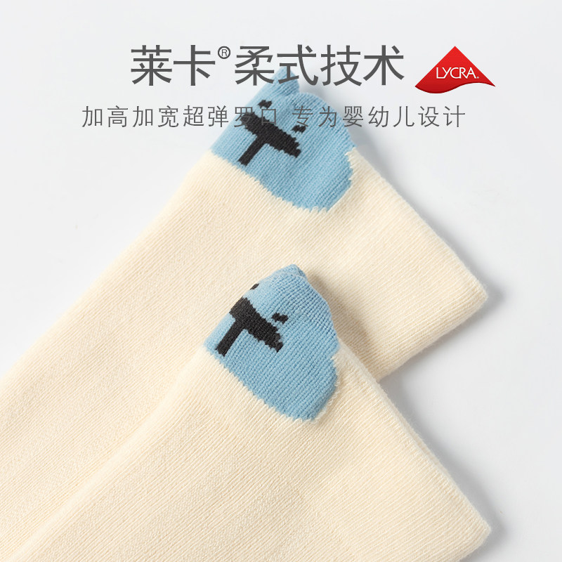 婧麒婴儿袜子秋冬新生儿宝宝可爱保暖长筒袜儿童无骨不勒过膝棉袜