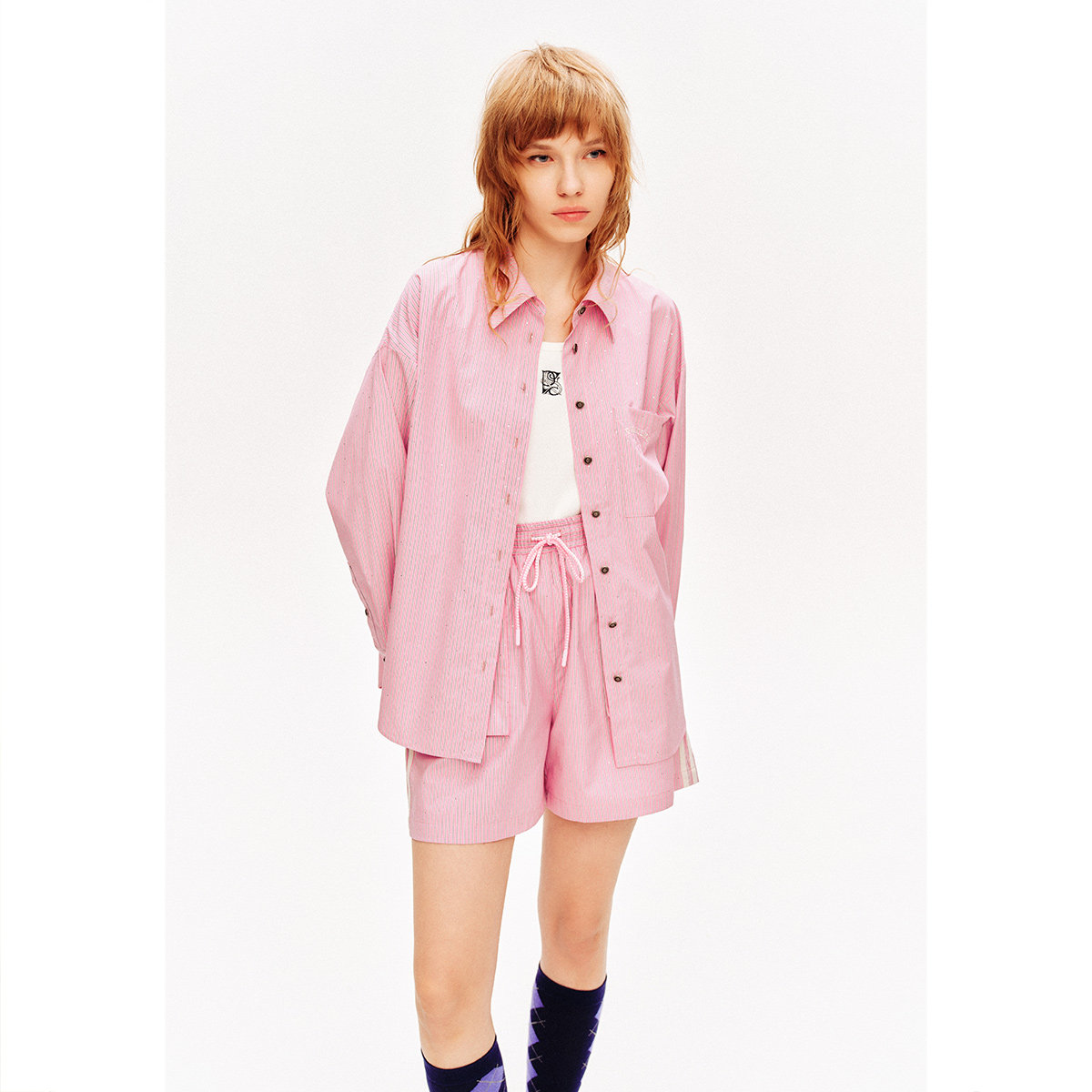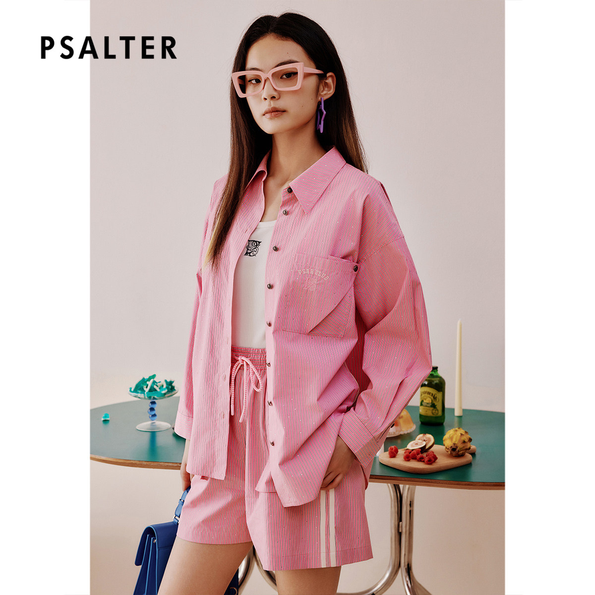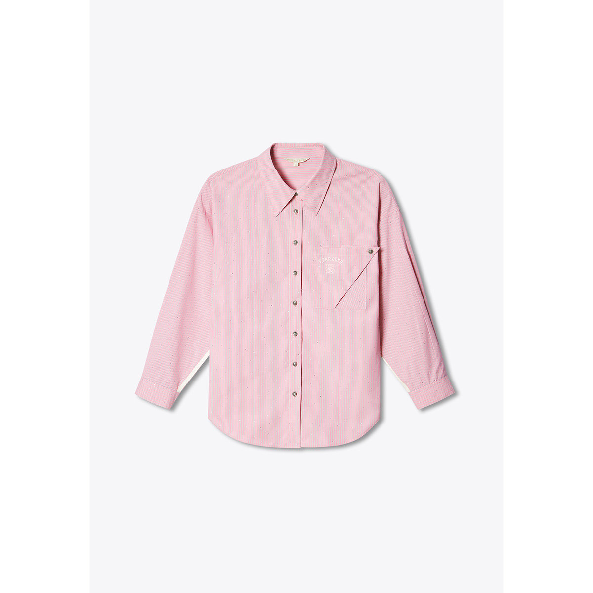 PSALTER诗篇宽松大版甜美减龄学院风烫钻条纹长袖衬衫夏款