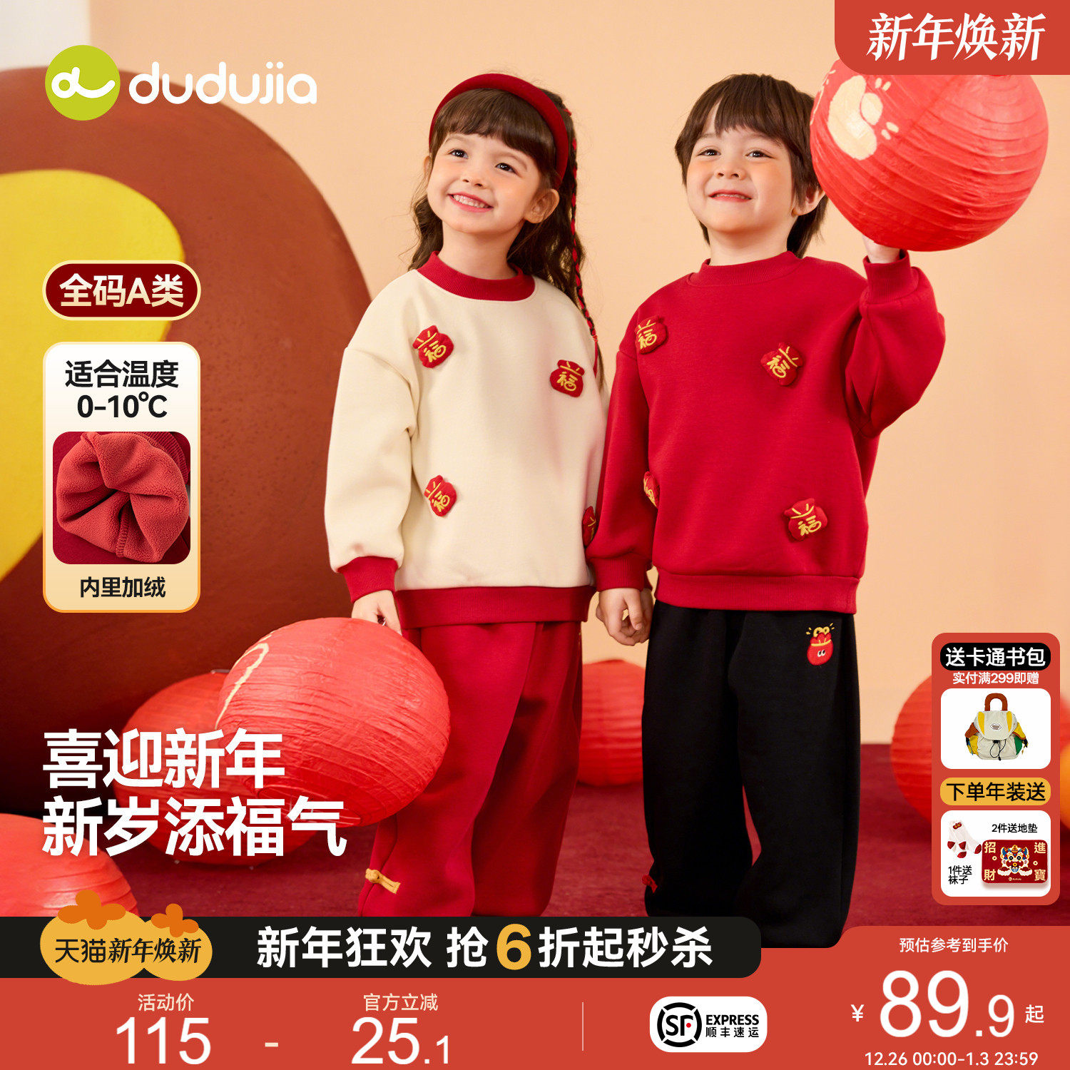 嘟嘟家宝宝唐装儿童拜年服套装男童冬装两件套女童喜庆新年装衣服