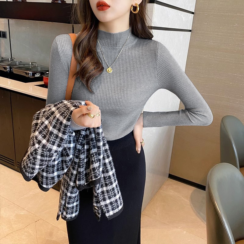 灰色半高领打底衫女装内搭高级2025新款爆款秋冬针织毛衣外穿上衣