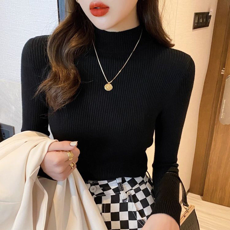 K1【爆款秒杀】半高圆领针织衫套头大码宽松百搭打底针织
