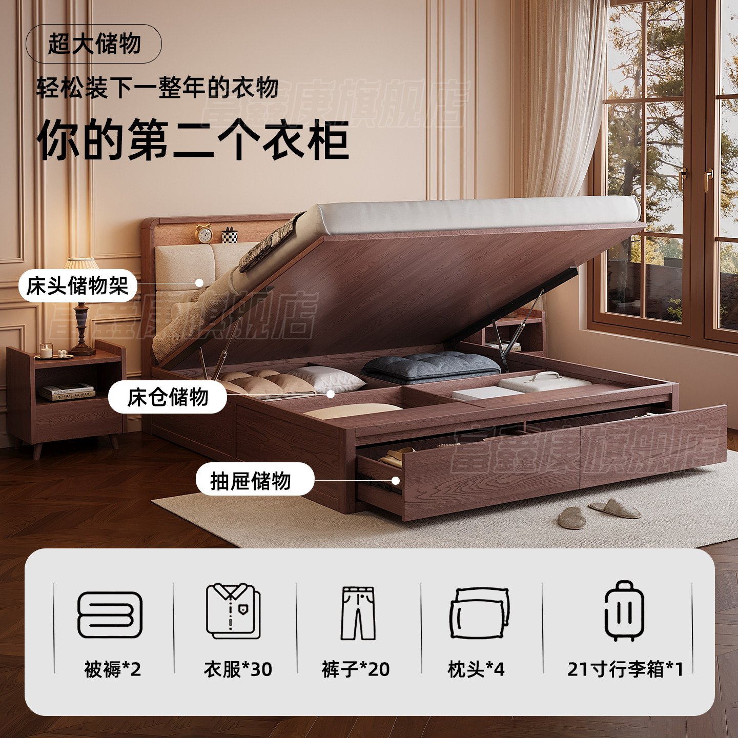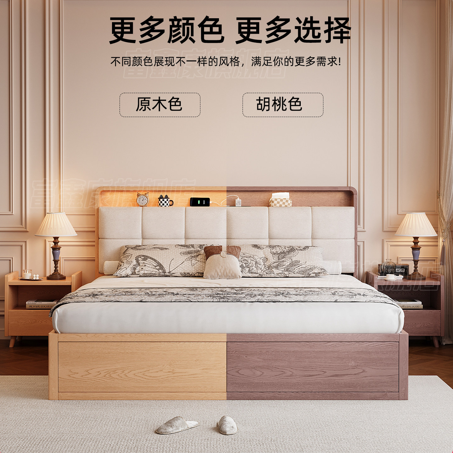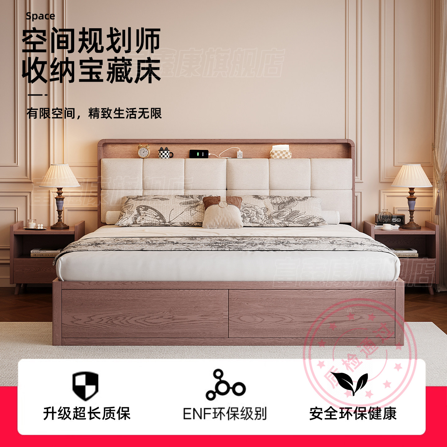 全实木床家用现代简约轻奢ENF级双人1.5米主卧高箱储物箱体床大床