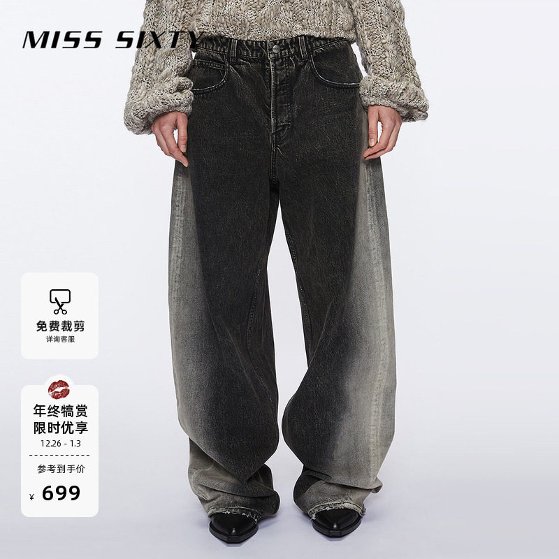 Miss Sixty牛仔裤低腰磨破阔腿裤渐变做旧复古洗水