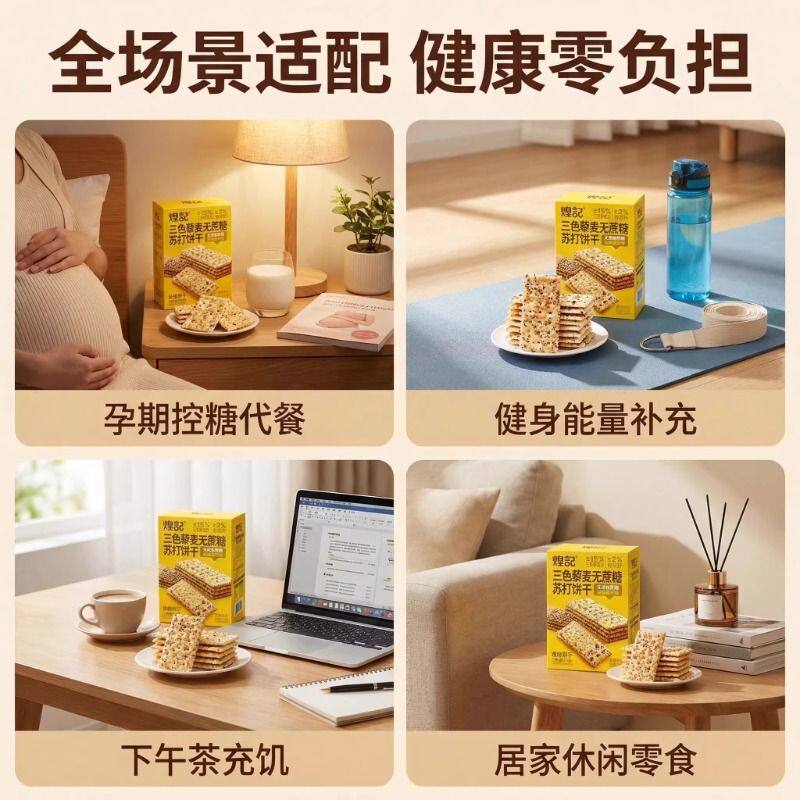 煌记奇亚籽三色藜麦无蔗糖苏打饼干解馋健康零食咸味黑麦海盐孕妇