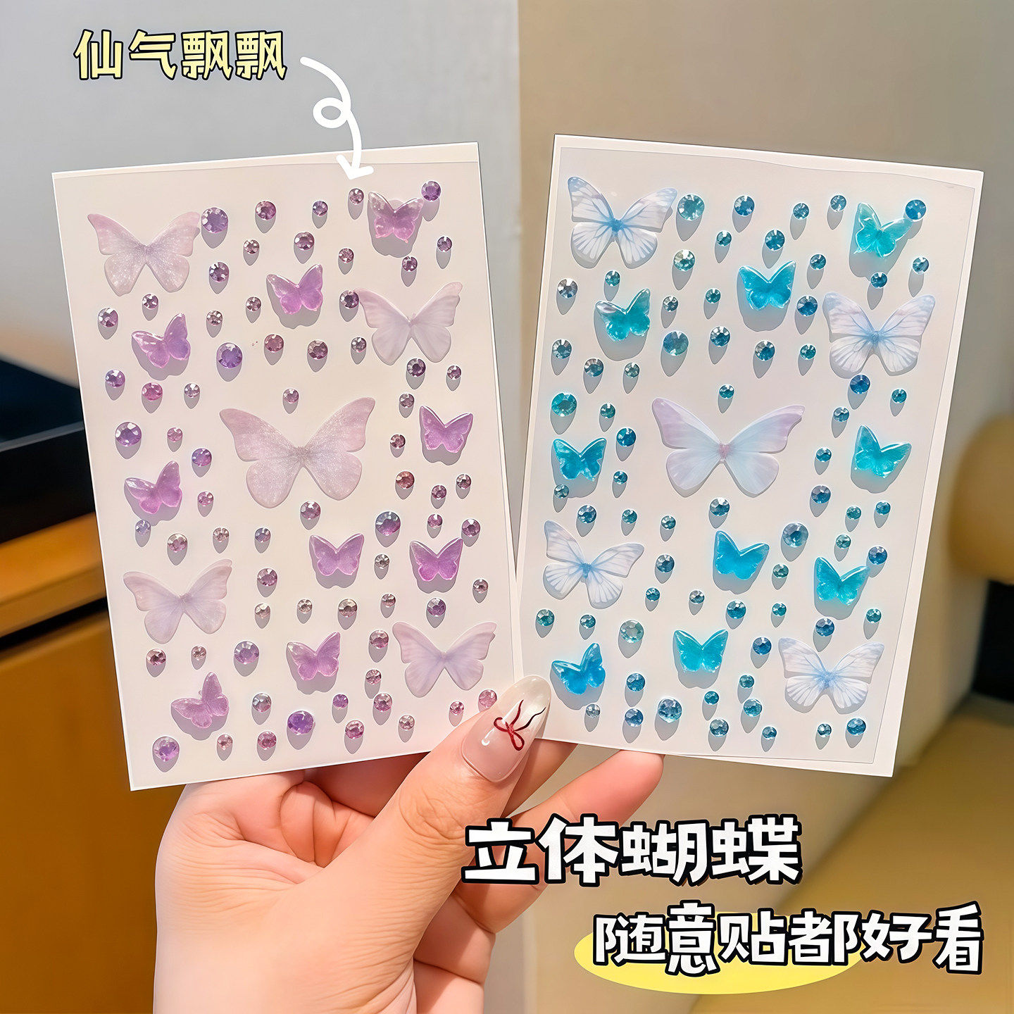 儿童卡通蝴蝶带钻小贴纸演唱会脸贴免胶自粘女童舞台表演妆造道具