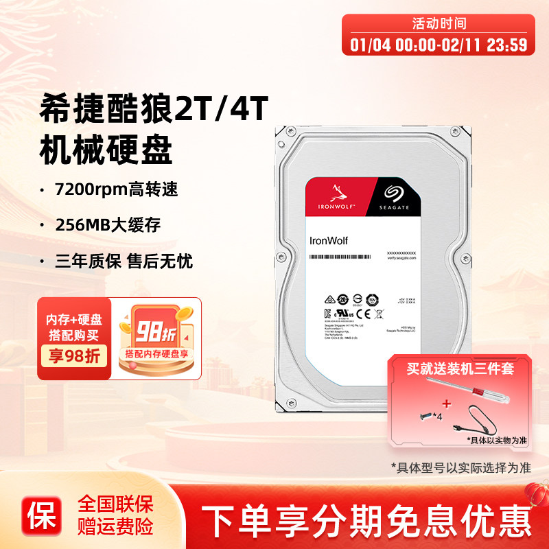 希捷酷狼2/4/6/8/10TB华硕企业级nas服务器SATA机械硬盘3.5寸监控