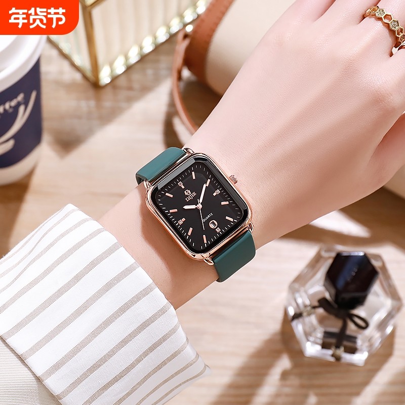 女款手表轻奢方形学生腕表女士小众ins小方表女士表情侣石英绿色