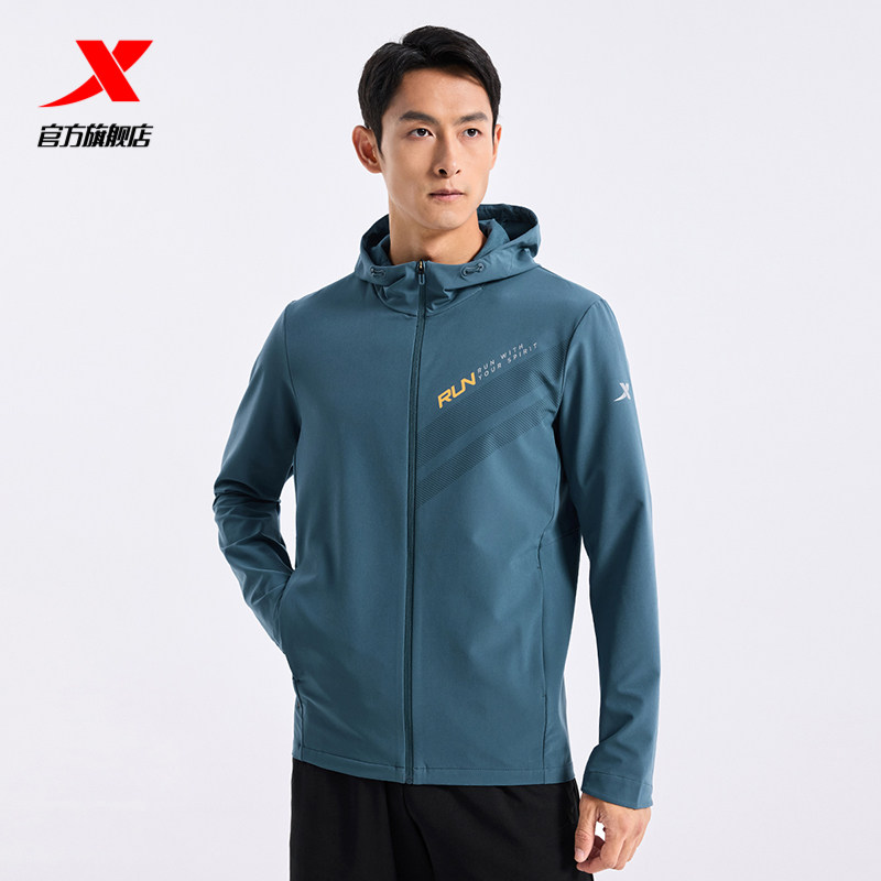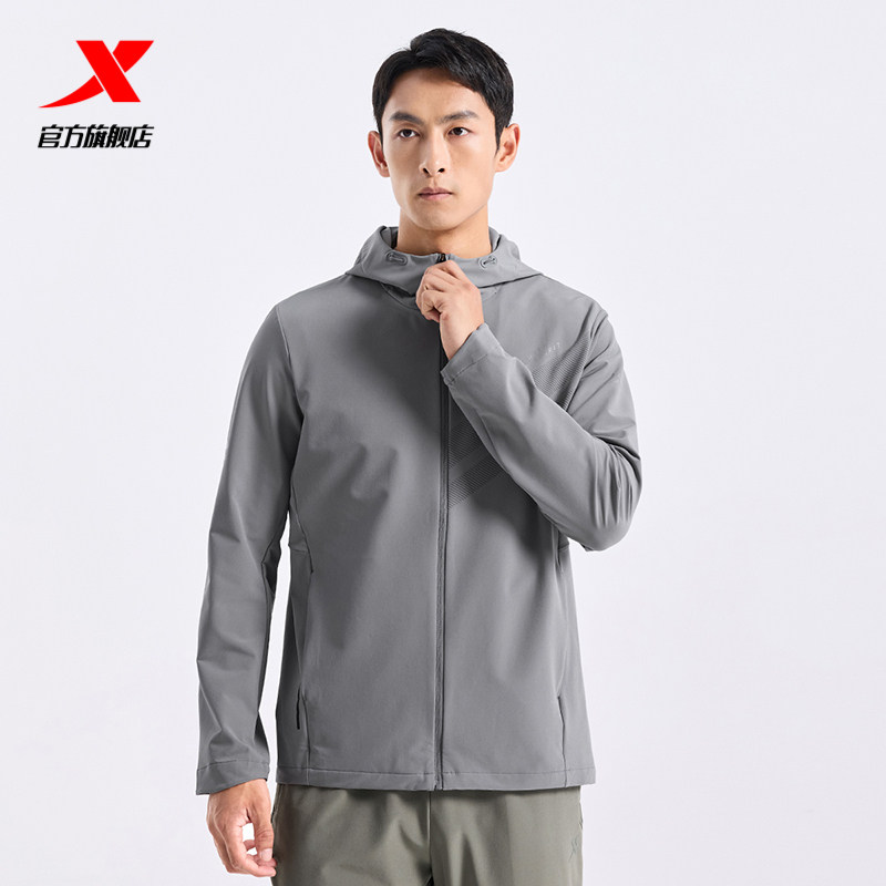 特步运动风衣男款2025秋季新款防风连帽外套休闲夹克976329150287