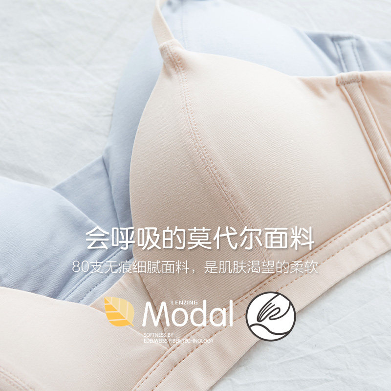 莫代尔显胸小无钢圈内衣女夏季薄款法式三角杯小胸聚拢少女文胸罩