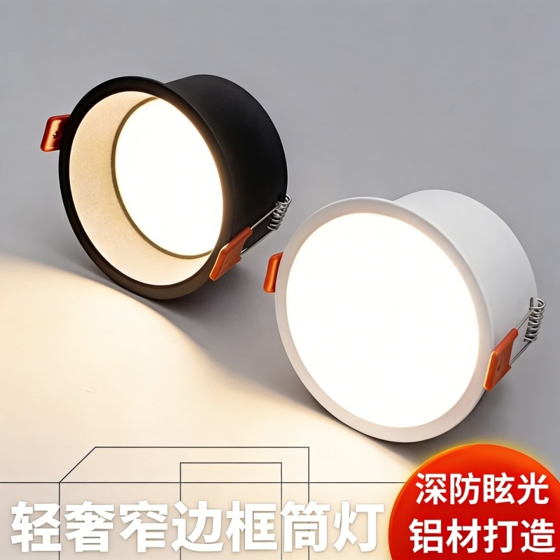 2025新款led筒灯全光谱嵌入式深杯防眩家用客厅吊顶筒灯射灯一体