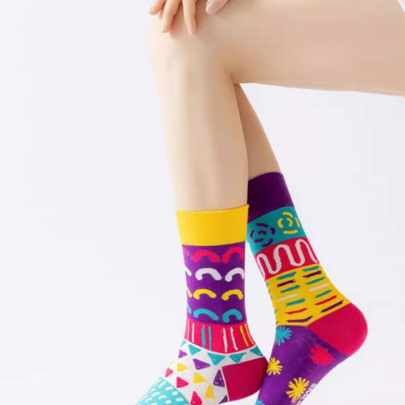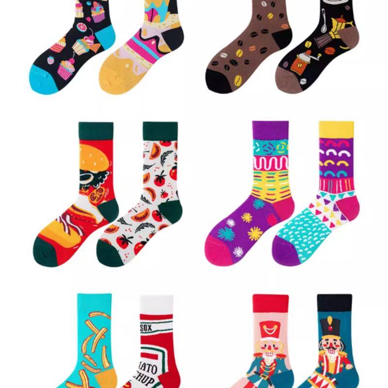 CrazySox 原创潮AB鸳鸯不对称图案ins街头百搭中高筒鞋带