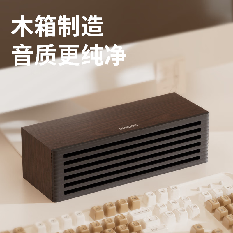 飞利浦复古木质蓝牙迷你音箱HIFI音质双喇叭重低音时尚小巧桌面