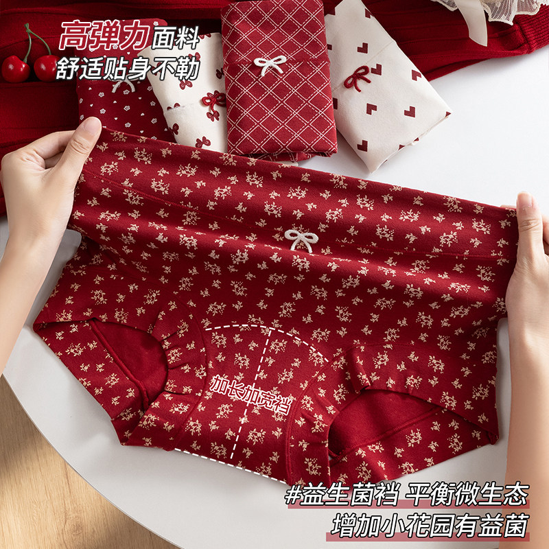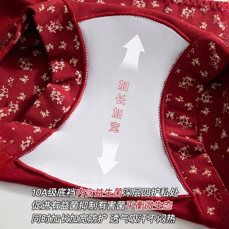 纯棉女士平角红色内裤抗菌10A级益生菌2026新款少女小碎花四角裤
