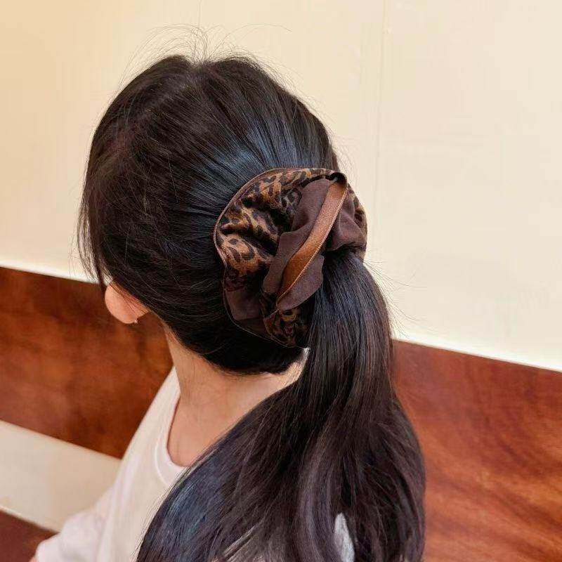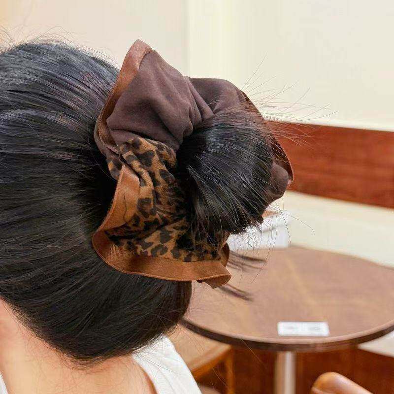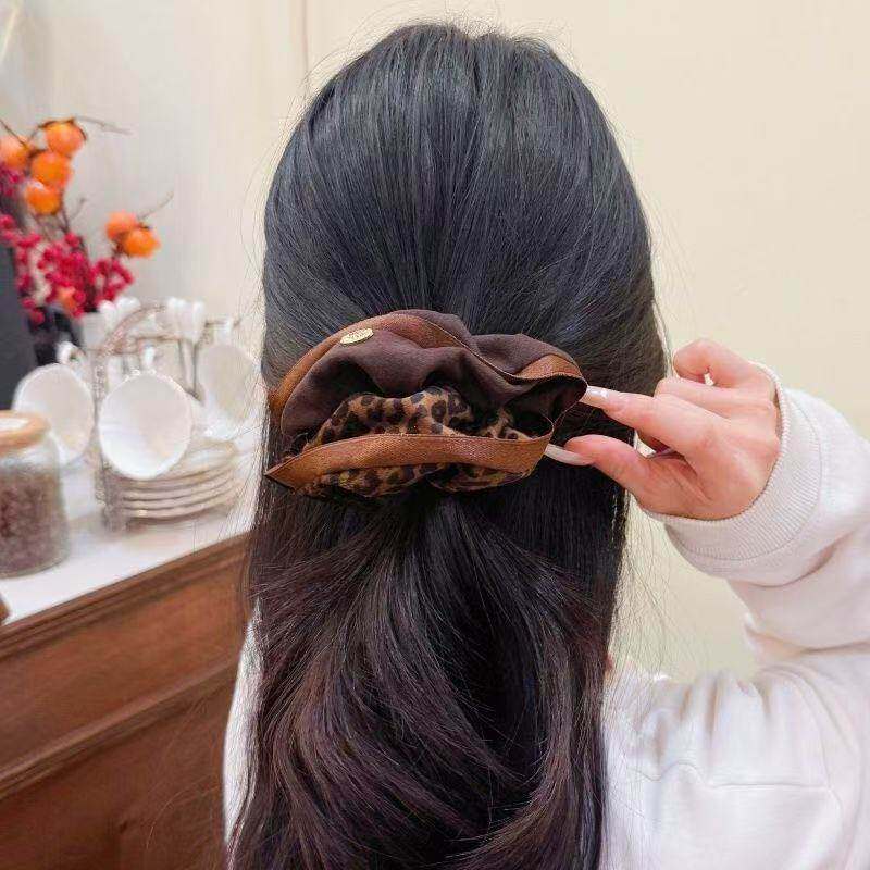复古豹纹布艺大肠发圈丸子头拼接咖色高级感时尚百搭女头饰