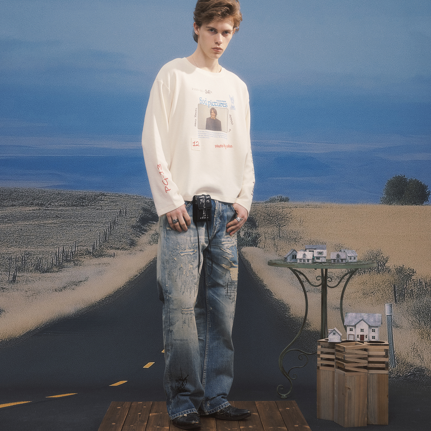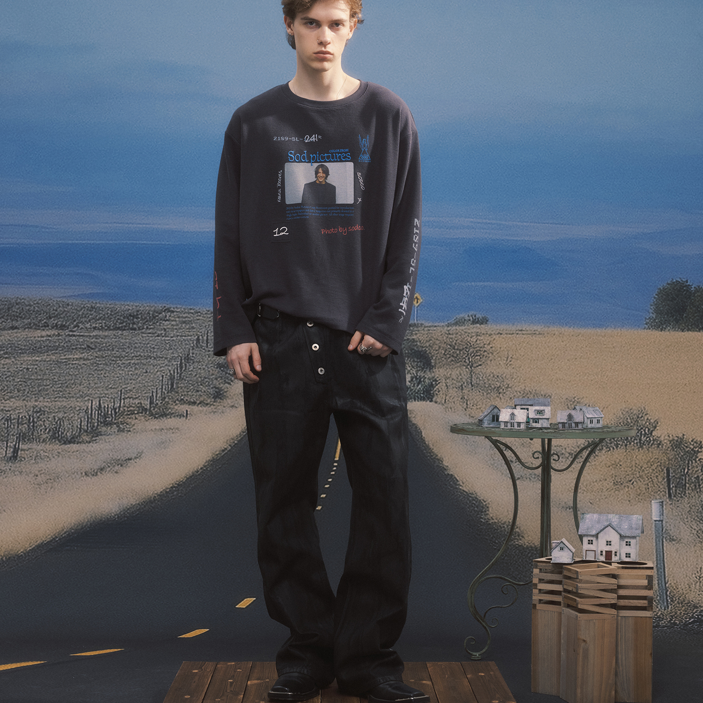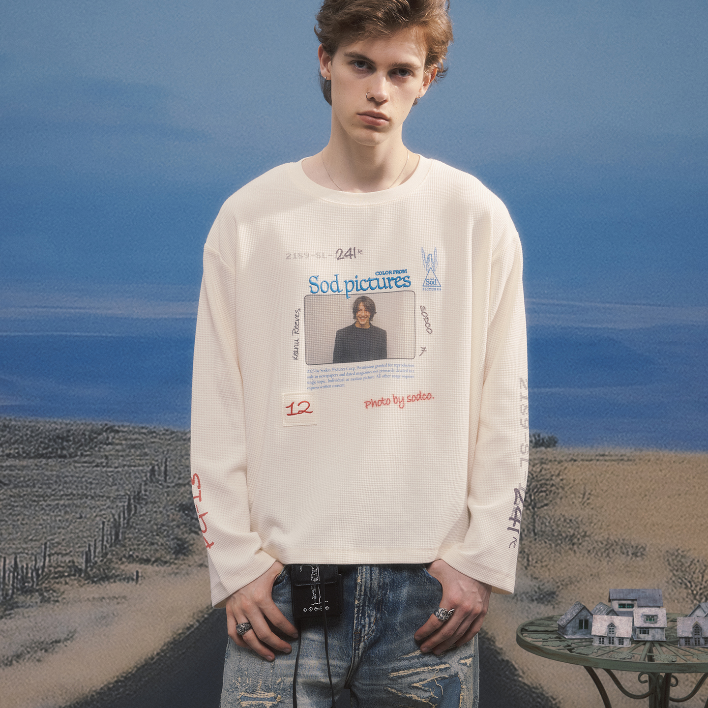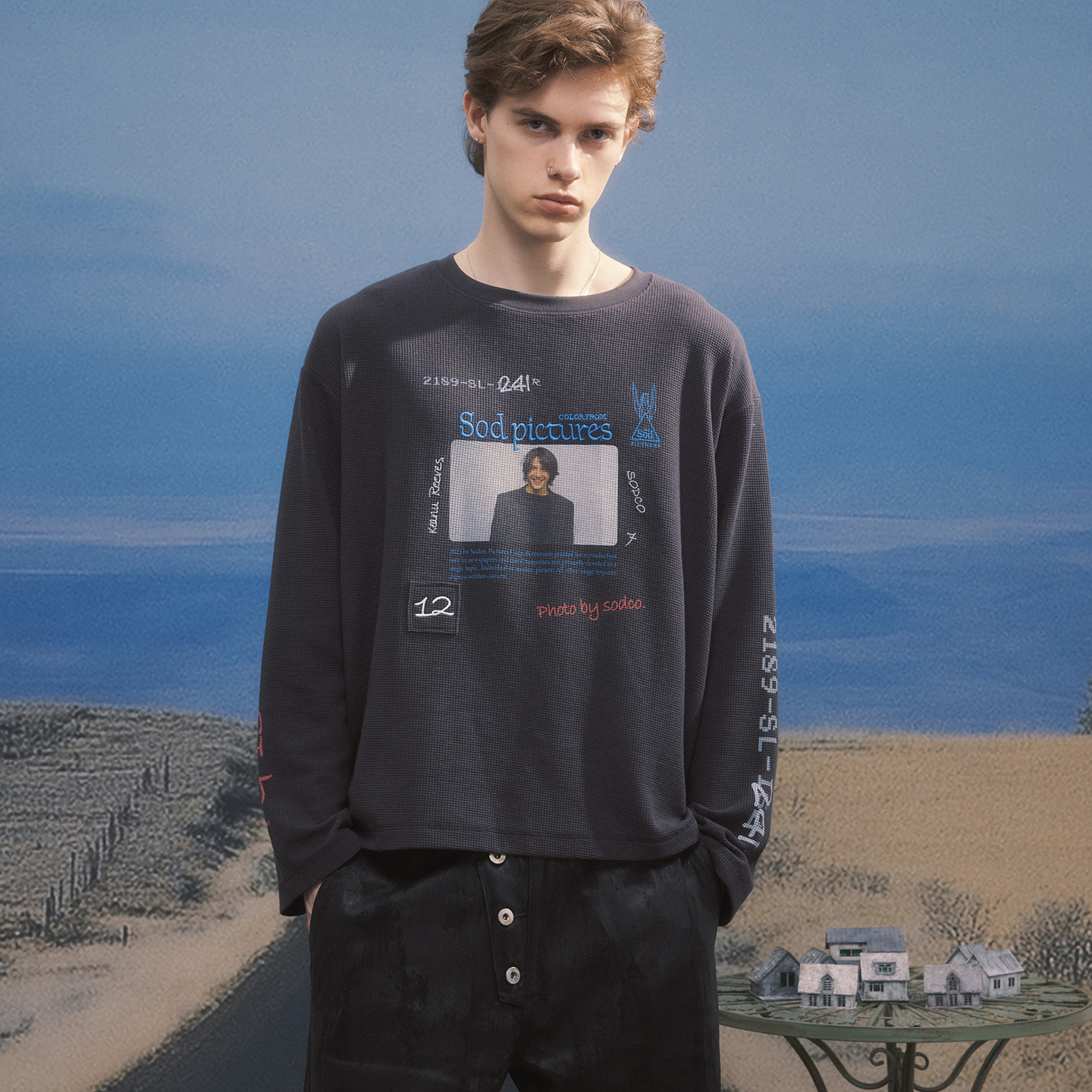 SOD Co. 华夫格长袖 “基努” 廓形人物印花复古卫衣长T恤