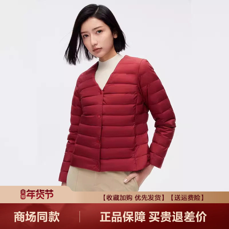 鸭鸭轻薄羽绒服女2025年秋冬反季短款立领修身舒适上衣内胆外套J