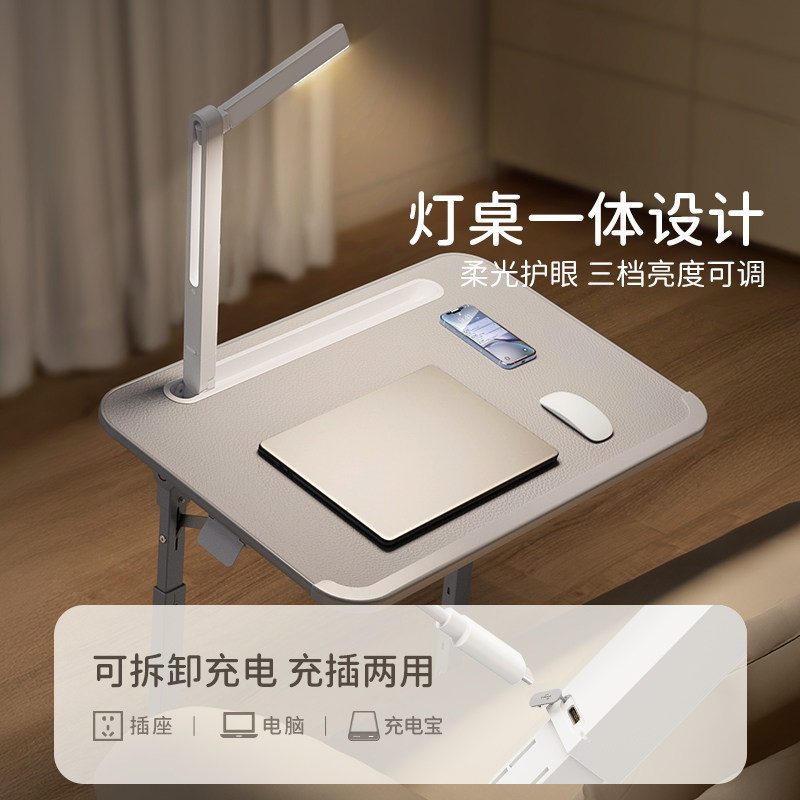 赛鲸F4床边桌超窄便携式折叠桌升降简易带台灯学习书桌卧室电脑桌家用单人笔记本工作边几沙发边桌移动书桌