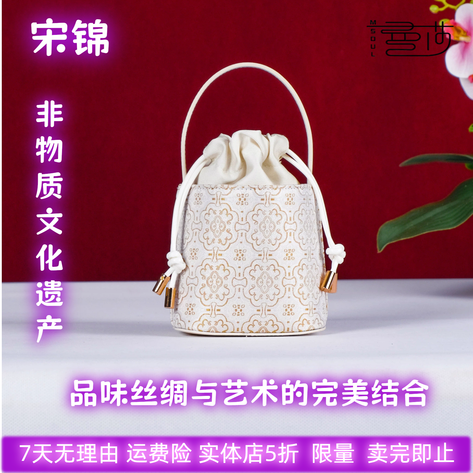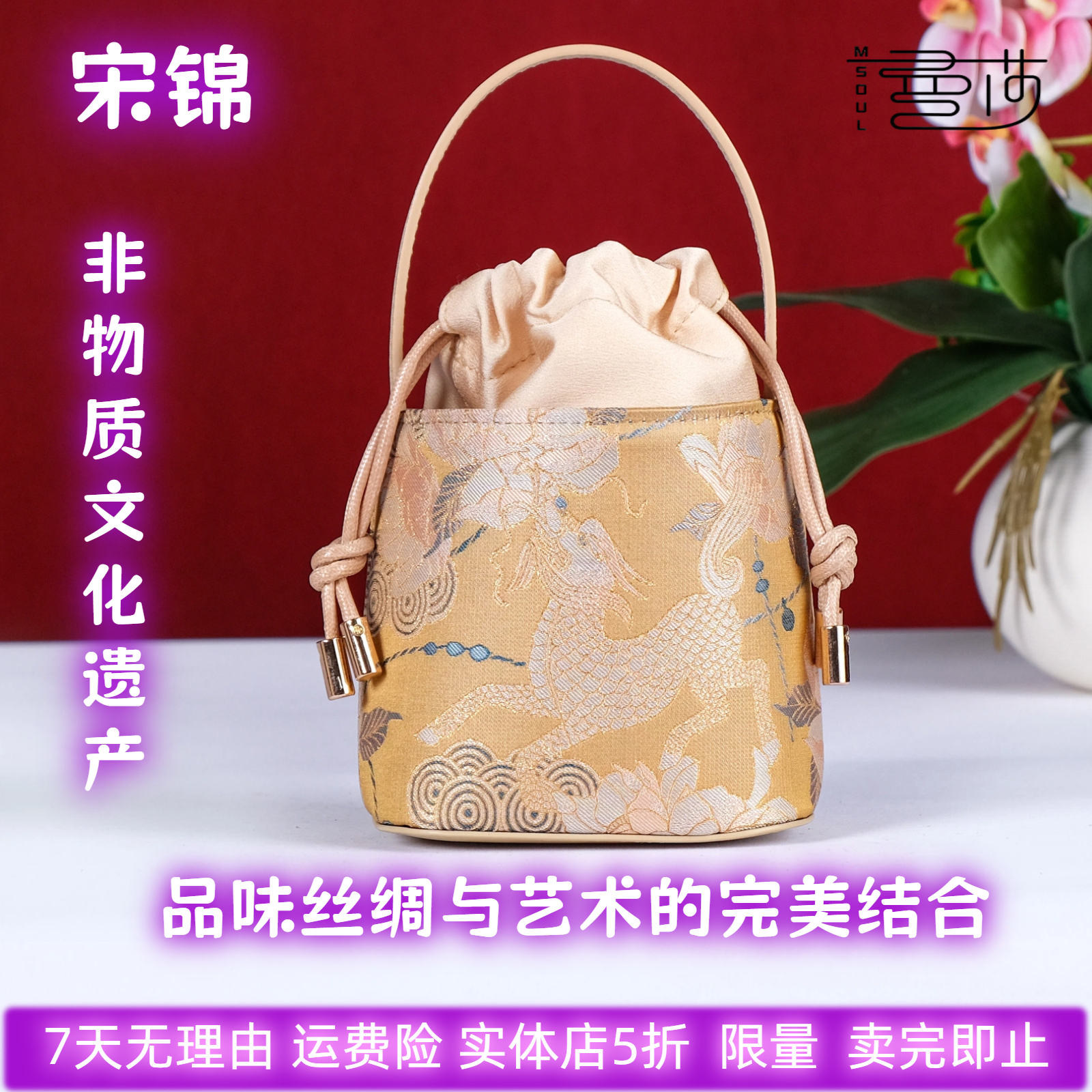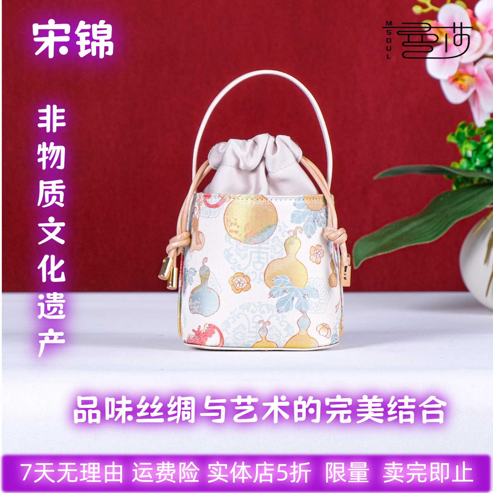 曼莎国风宋锦香云纱手提斜挎刺绣真丝牛皮新款新中式女包旗袍包包