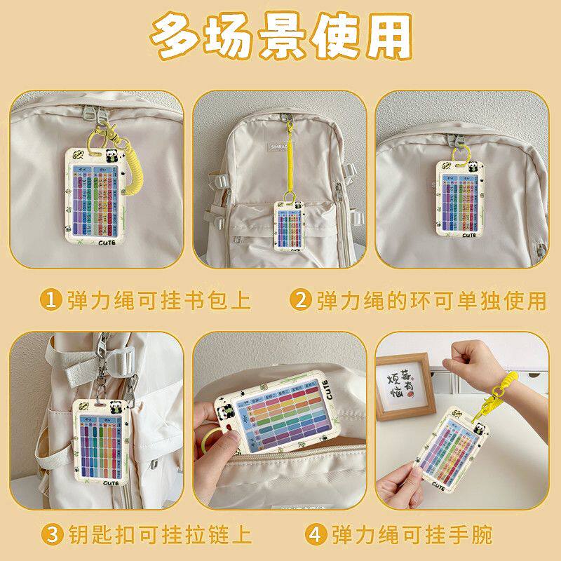 中小学生课程表卡套卡通弹簧绳书包钥匙扣挂件学生便携式科目课堂表硬卡片高颜值防丢饭卡公交地铁卡保护套