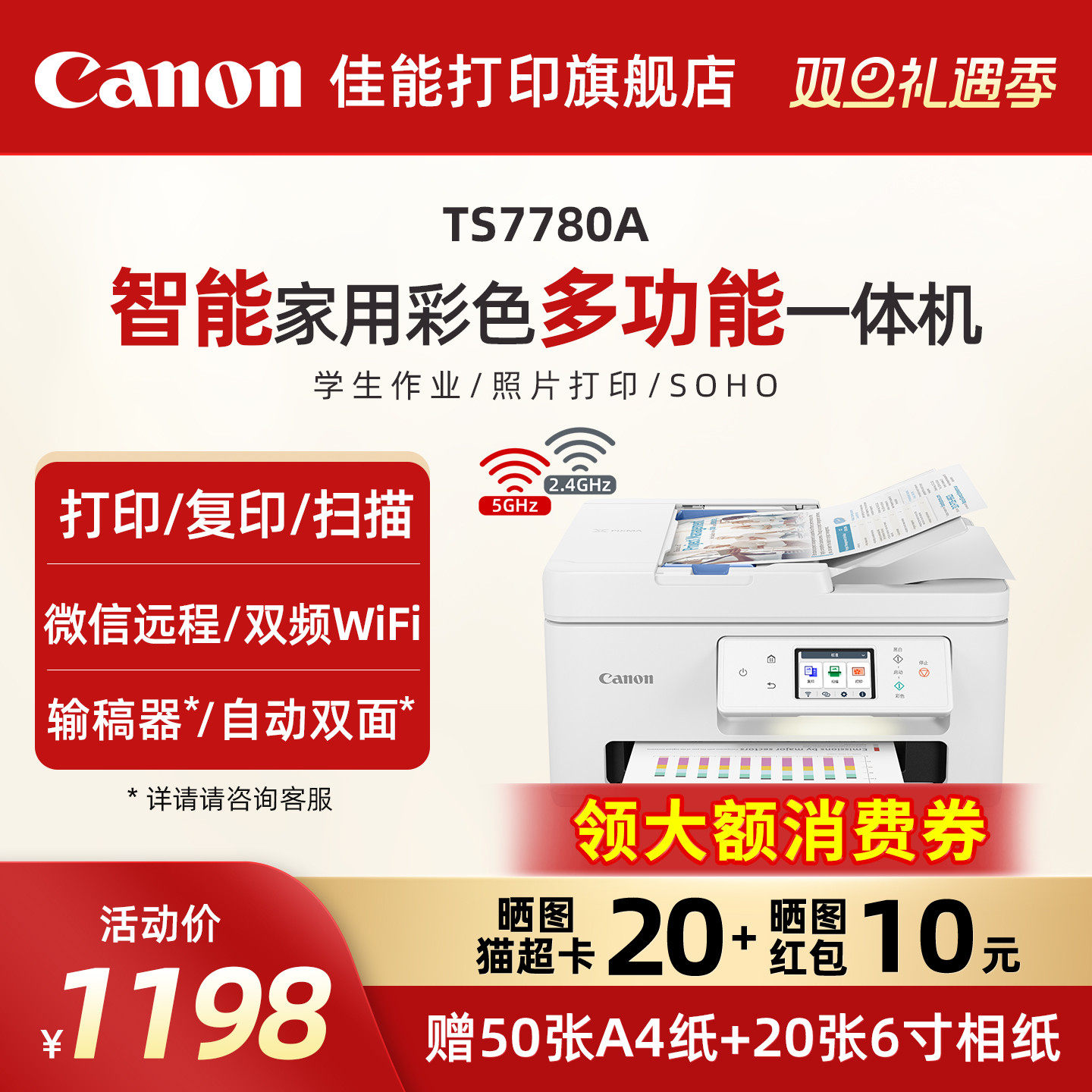 佳能旗舰店TS7780/TS7780A彩色照片喷墨打印机复印机扫描机无线家用办公一体机学生智能家用一体机