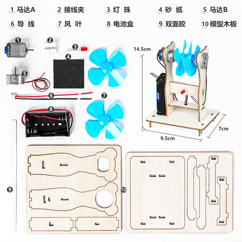 风力发电双新科学实验独立材料包套件小学科技小制作课外作业推荐