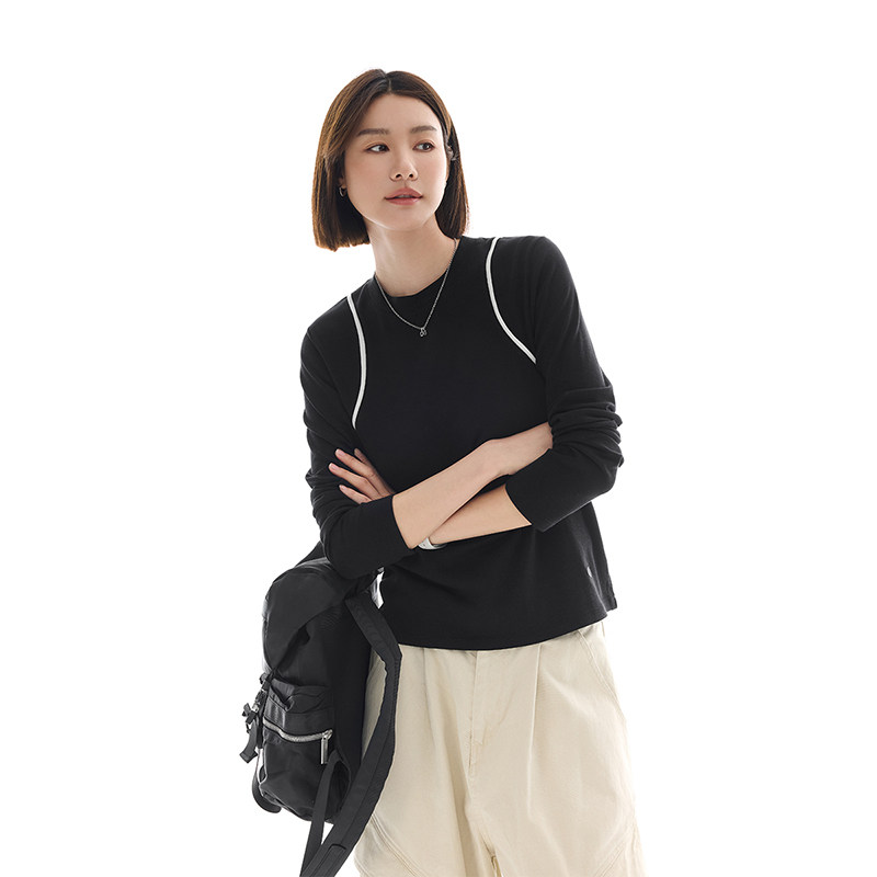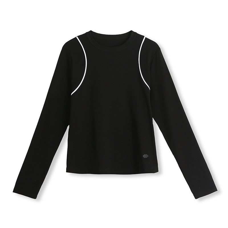 CLOUDSPACE【黑白织带T】撞色嵌条短款长袖女T恤春季简约显瘦上衣