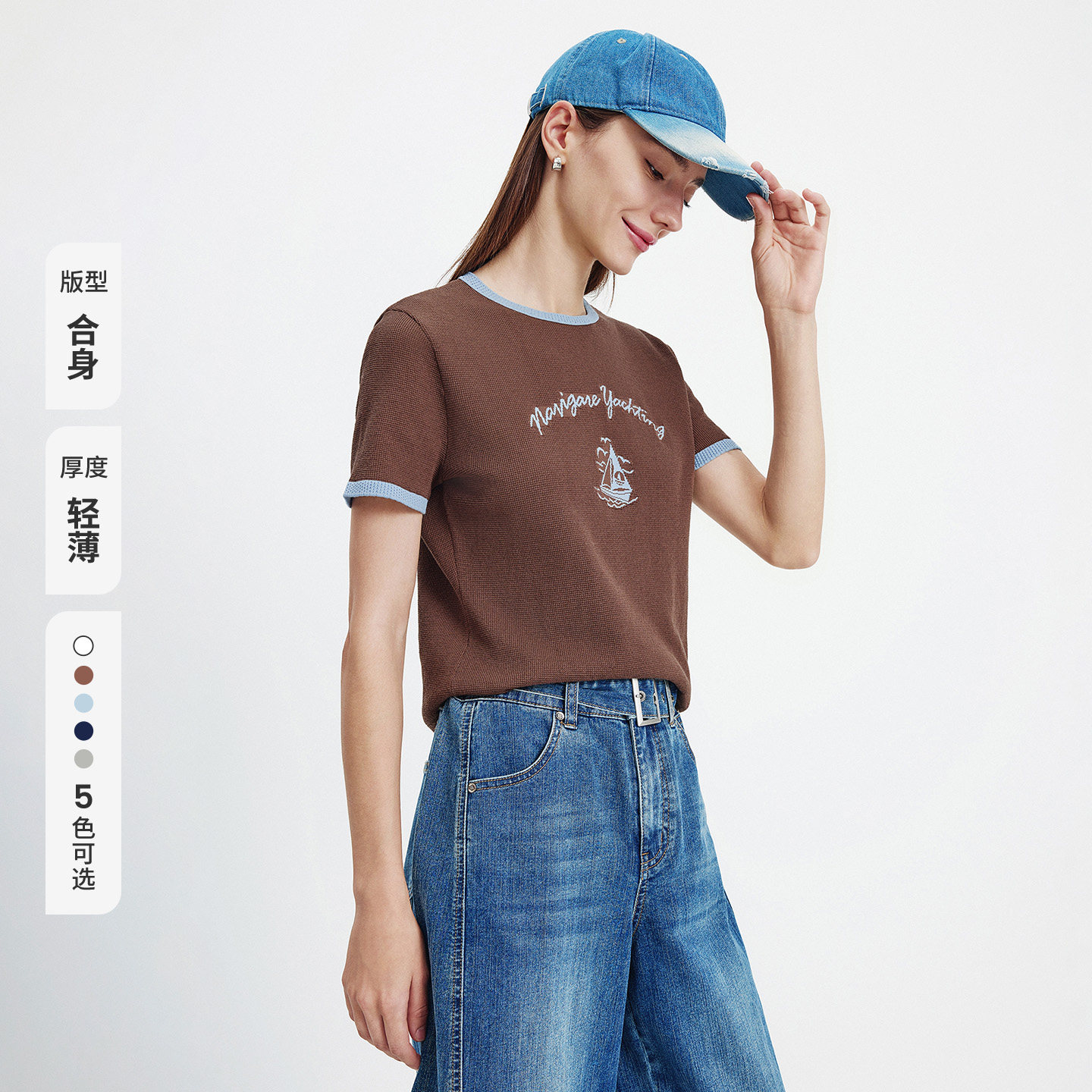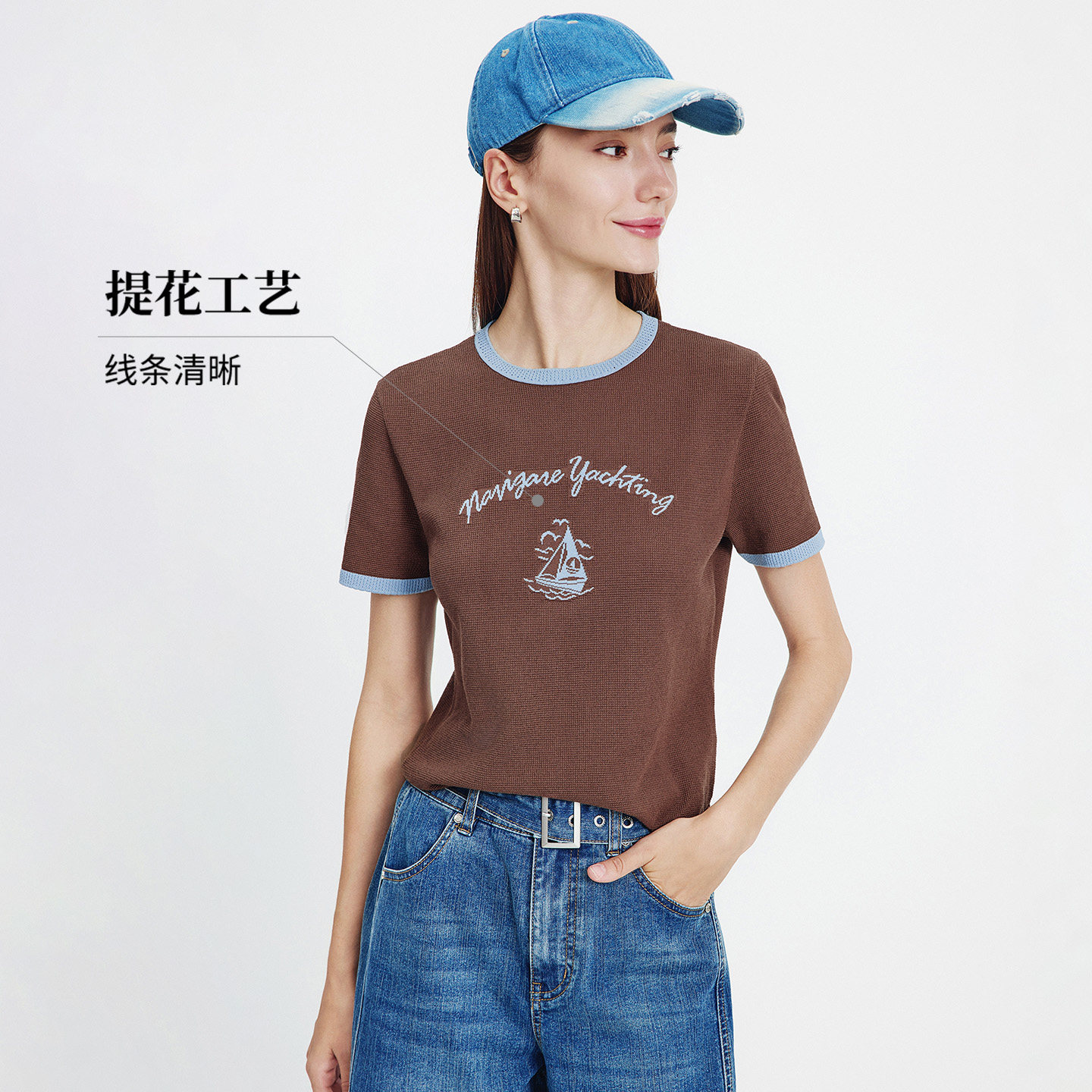 Navigare意大利小帆船圆领套头短袖T恤女2026夏季新款百搭体恤衫