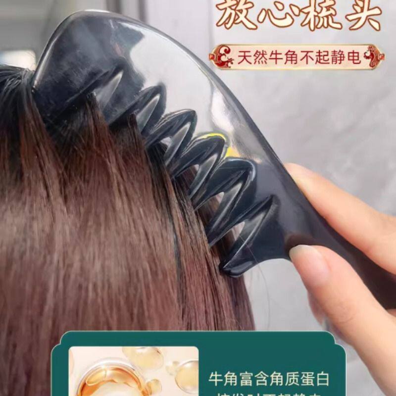 牛角梳大齿宽梳正品天然头皮部经络按摩梳头疗梳女士卷发顺发梳子