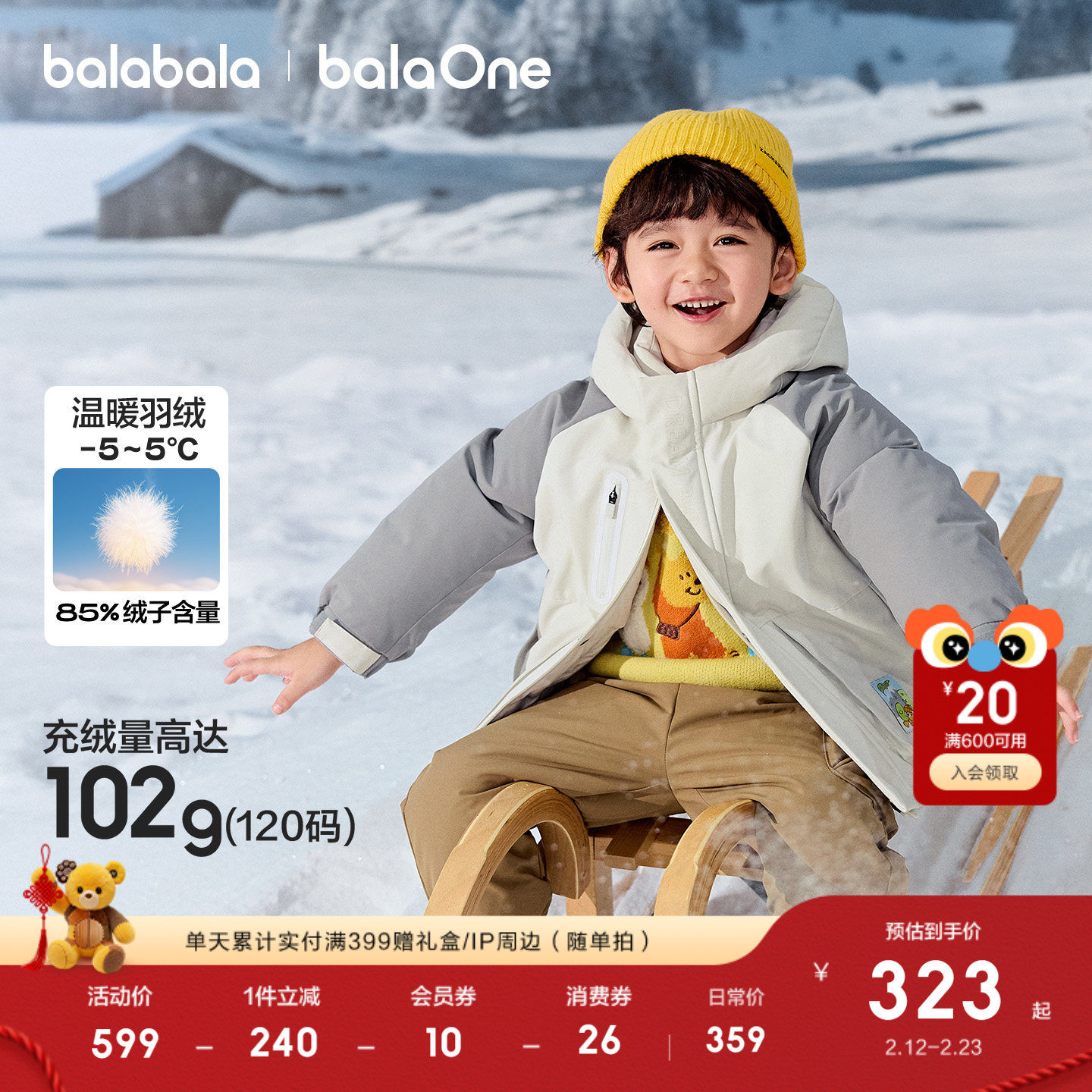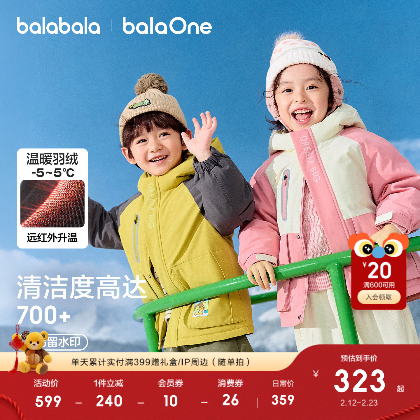 巴拉巴拉童装儿童羽绒服女童男童2025年新款连帽冬装上衣蓄热外套