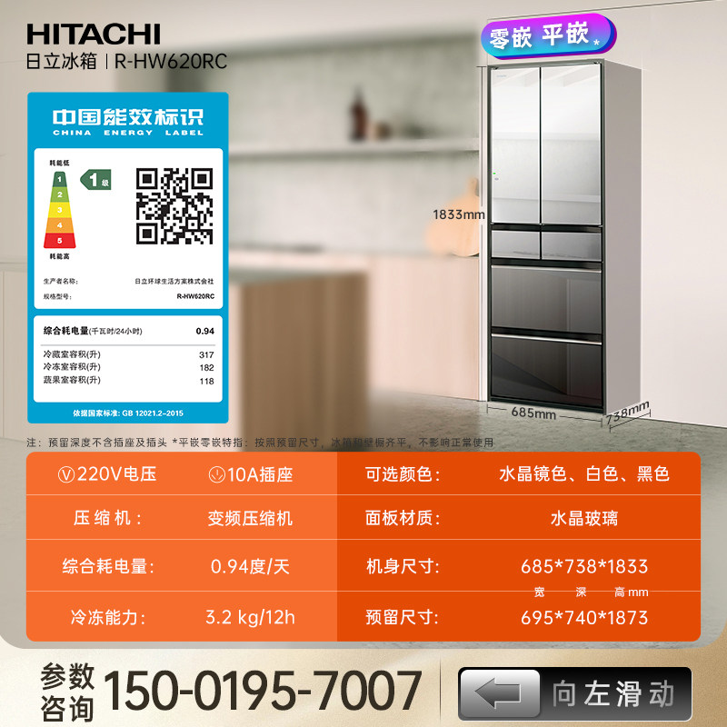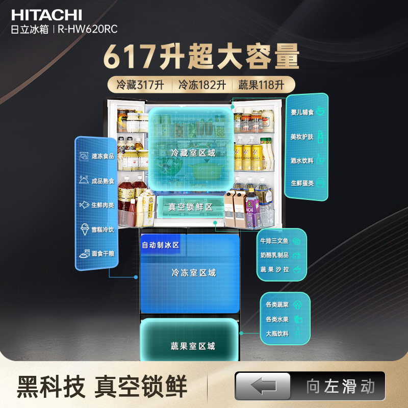 日立冰箱620日本原装进口家用嵌入式大容量一级冷冻无霜自动制冰