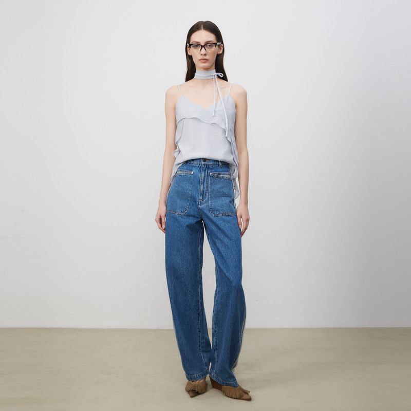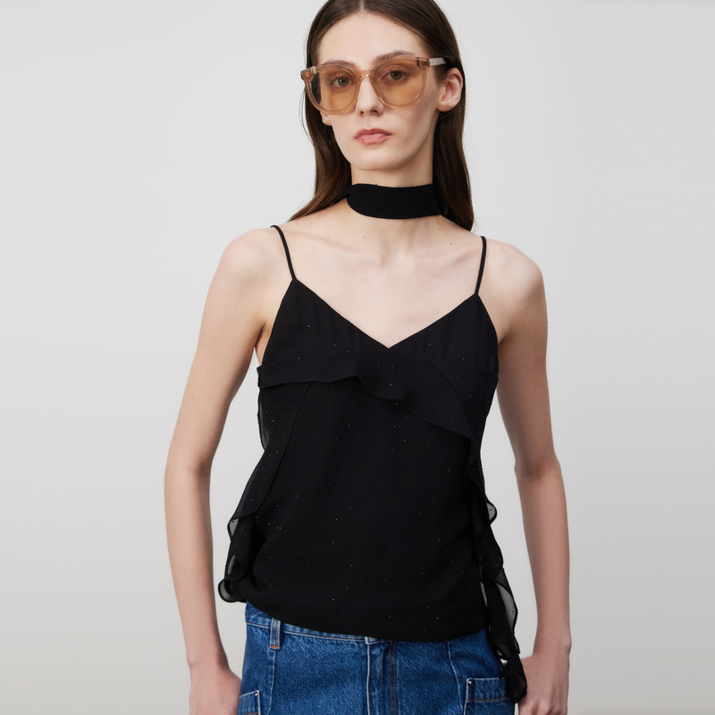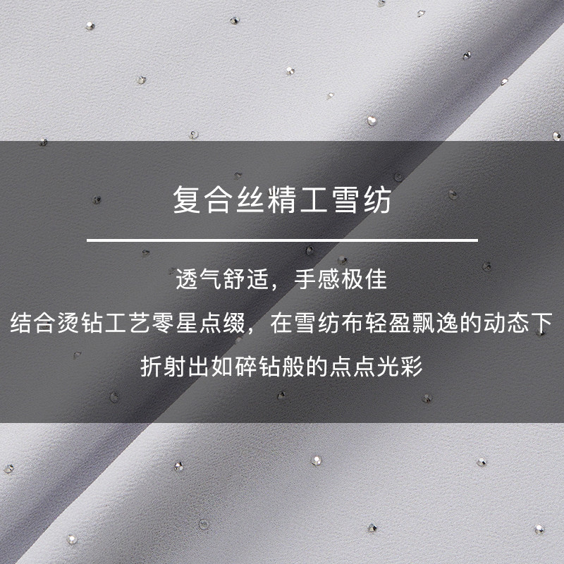 不规则花瓣边V领吊带 雪纺烫钻工艺轻盈闪耀