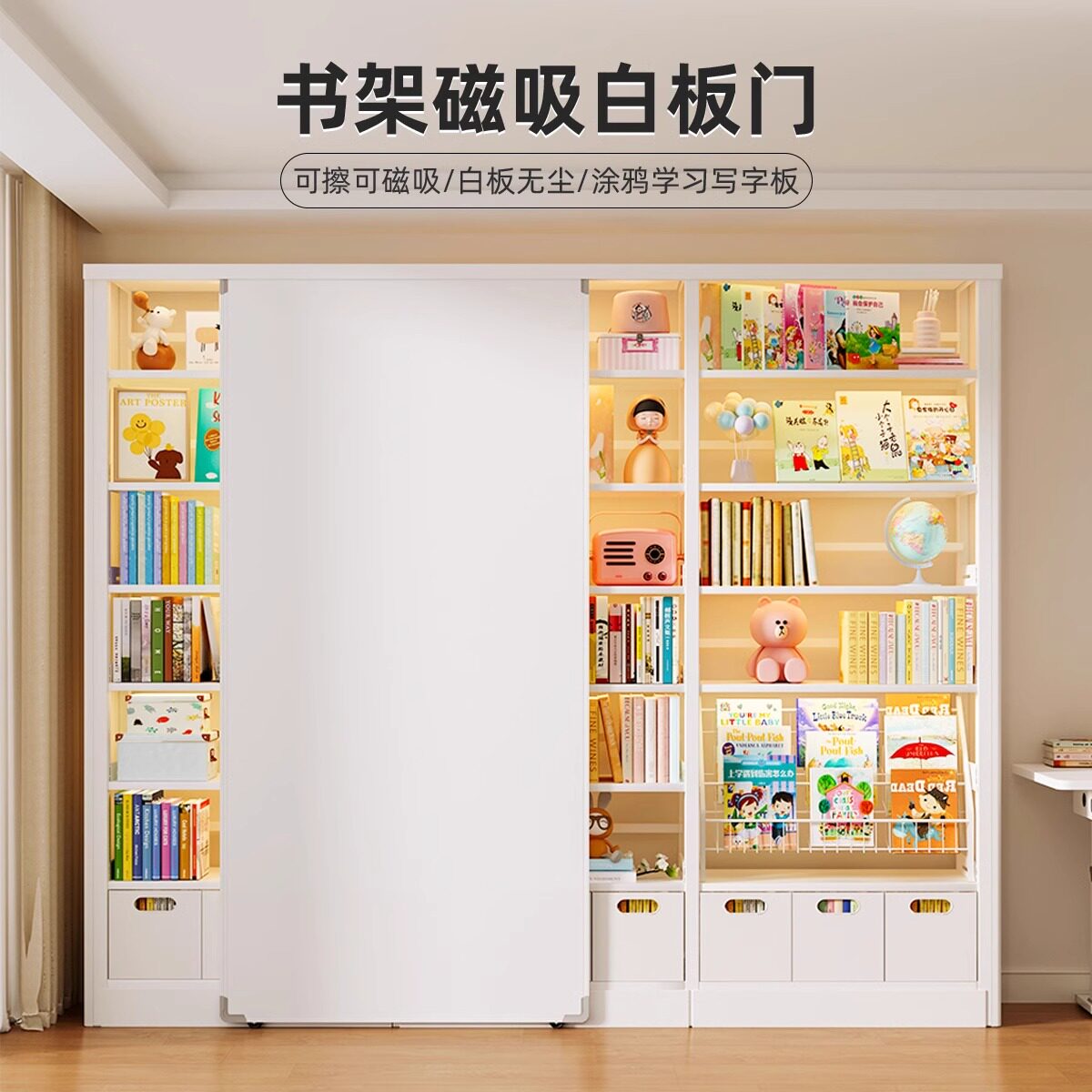 定制阿格贝贝豫正星都图书馆钢制书架白板门免打孔推拉磁吸白板门