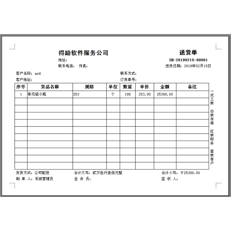 红管家送货单打印软件仓库记账打印软件系统、销售收据订单打印