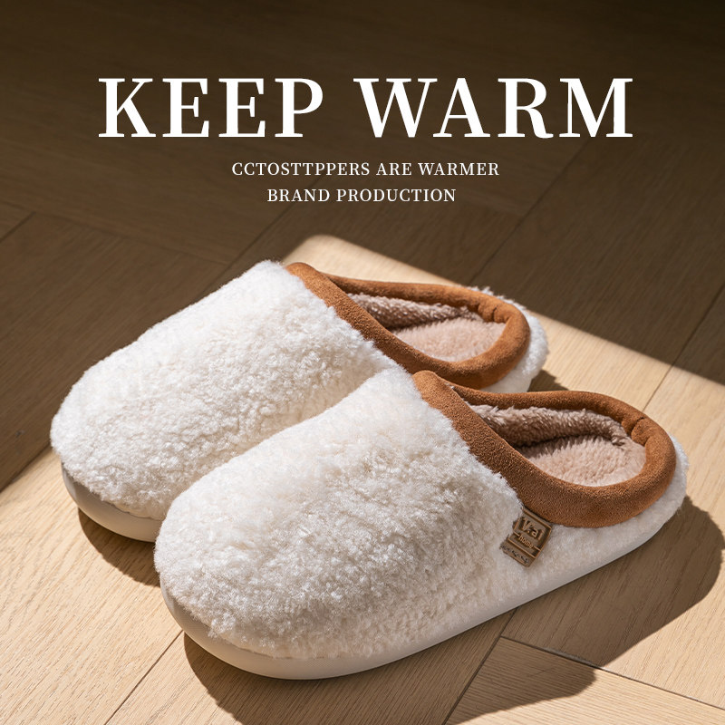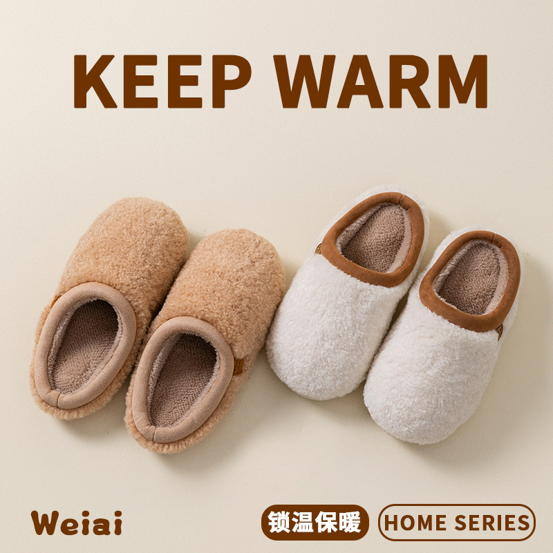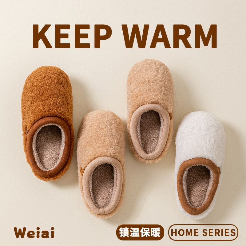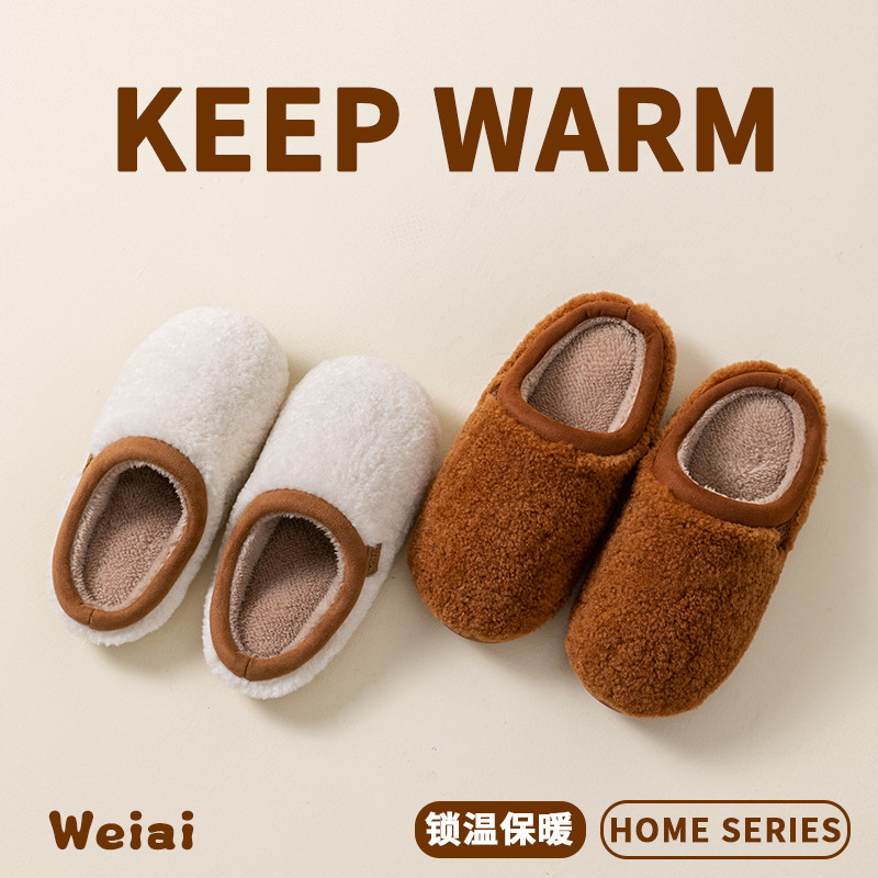 朴西棉拖鞋女士秋冬季厚底简约保暖室内居家用软底防滑情侣棉拖男