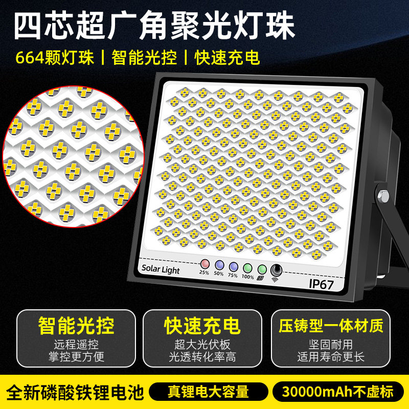 太阳能户外灯家用新农村室内超亮大功率庭院灯投光一拖二照明路灯