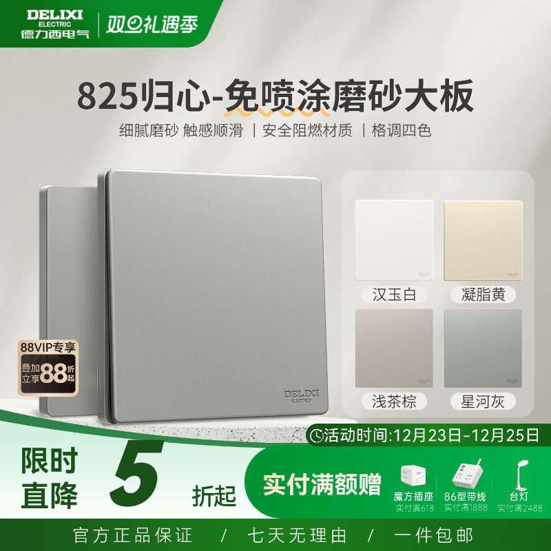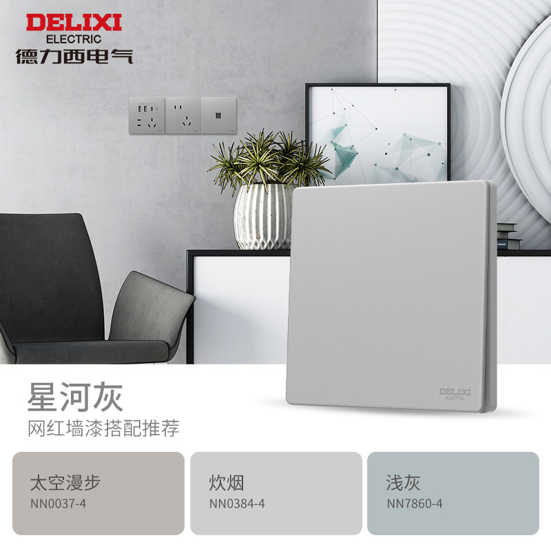 德力西旗舰店825奶油风哑光磨砂开关五孔插座空调16A面板星河灰