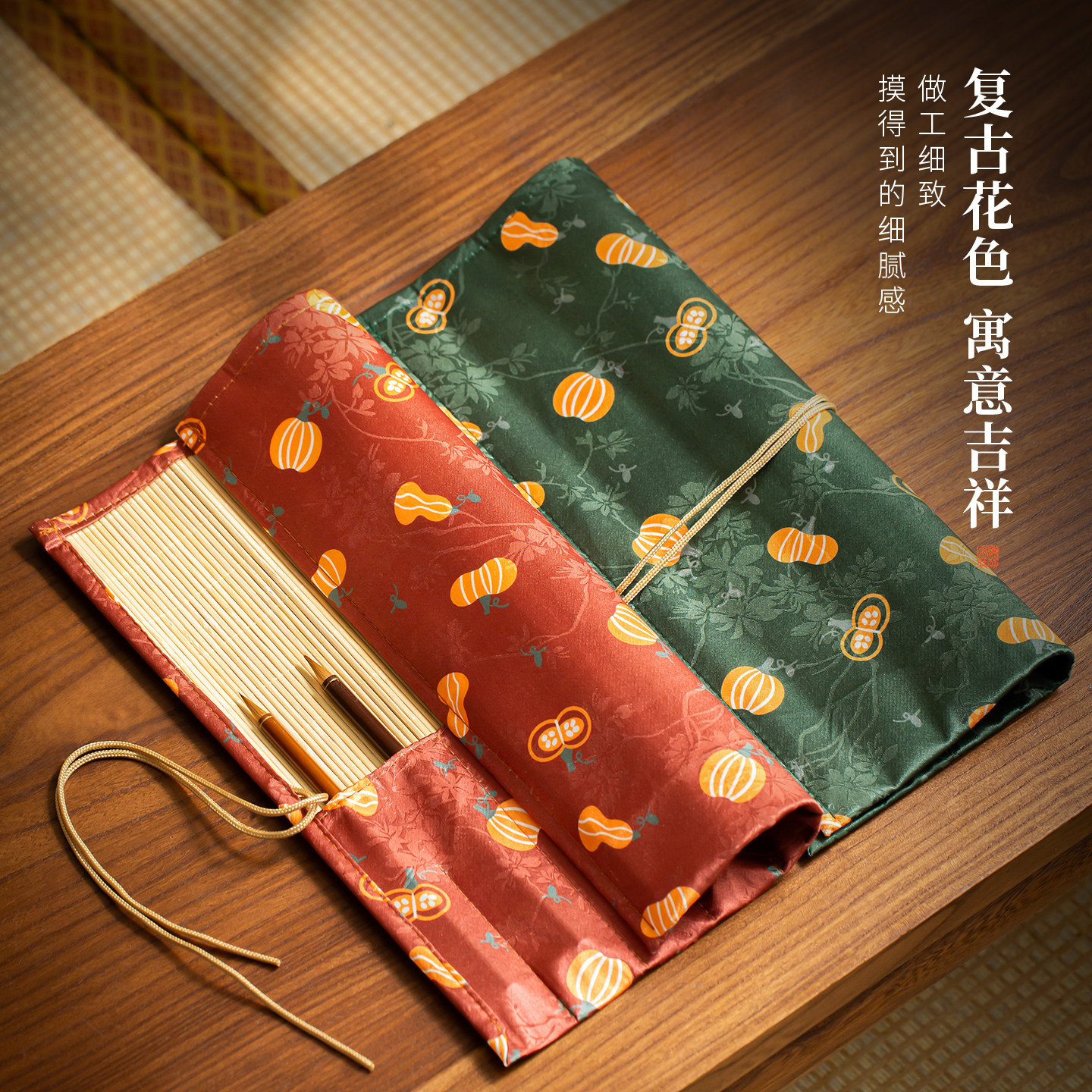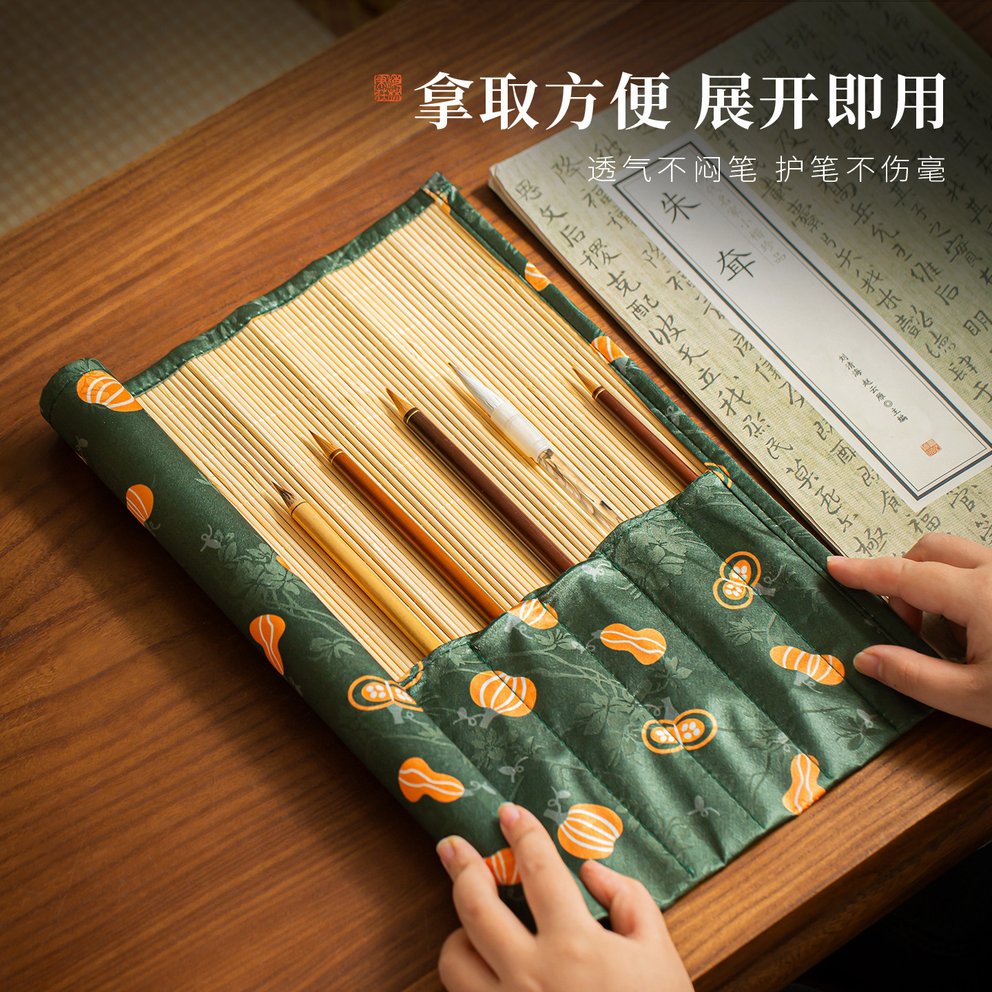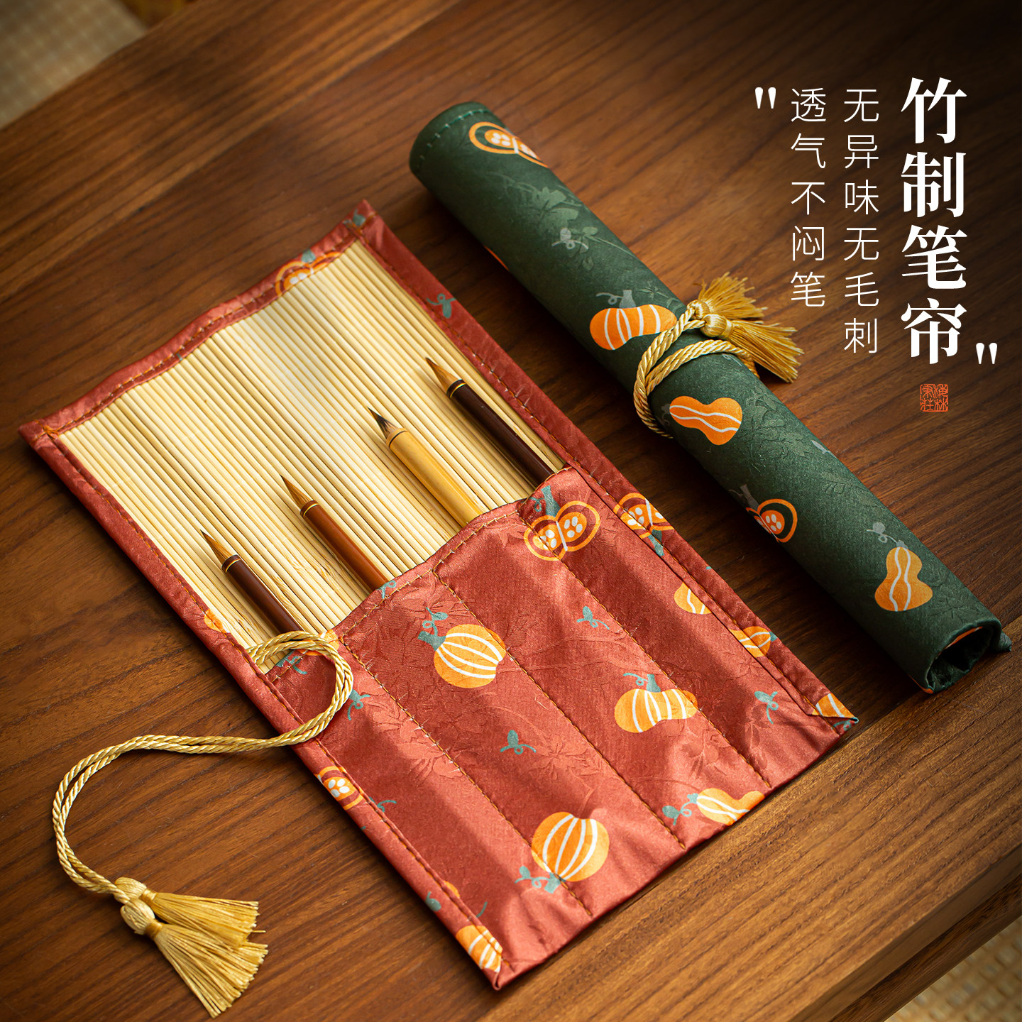 梅林笔庄毛笔收纳帘放毛笔便携书法专用竹帘卷帘笔套新中式小学生练毛笔字收纳神器国画复古款福禄笔帘式笔袋