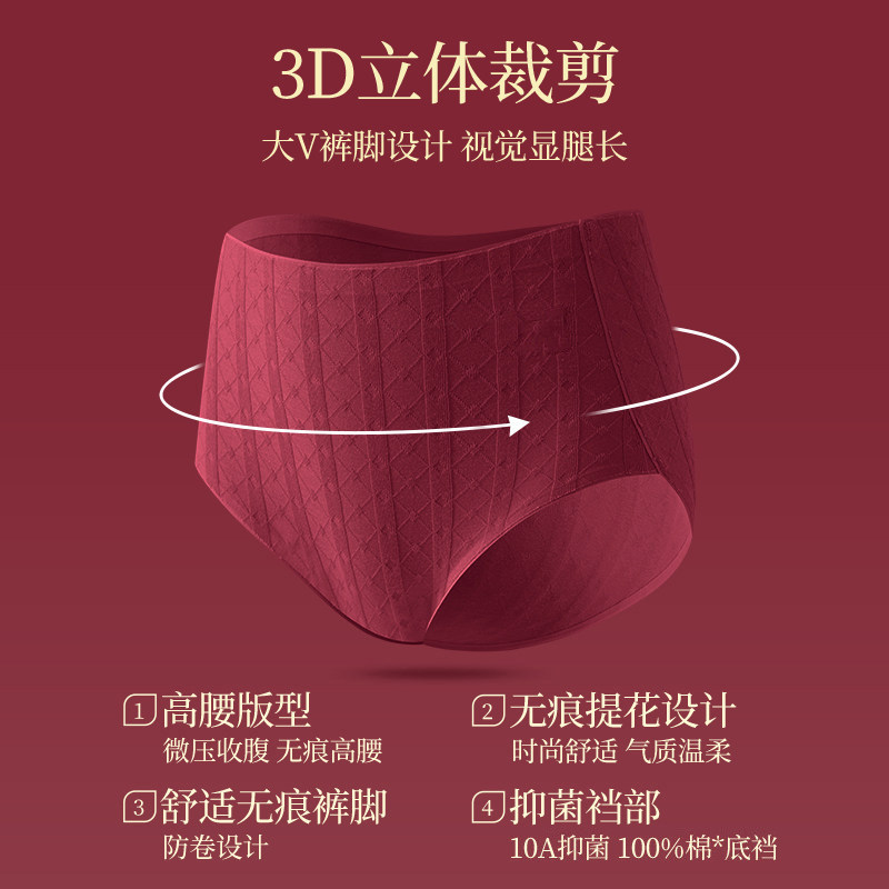 雅鹿本命年红色内裤女士高腰收腹纯棉抗菌裆2026马年三角短裤女生