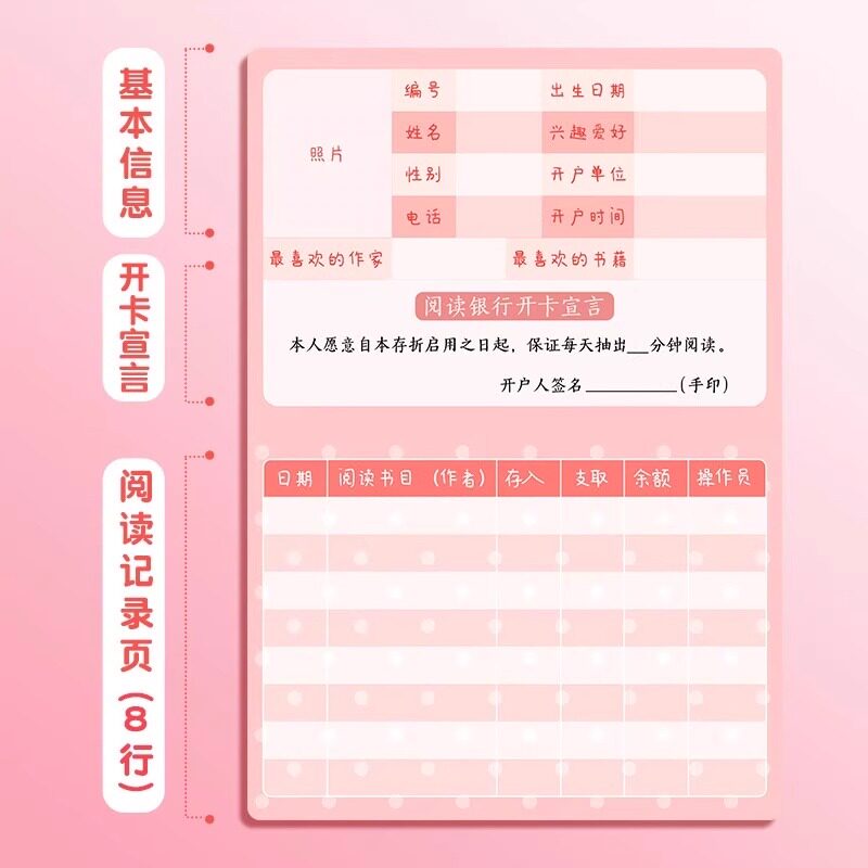 小学生阅读存折记录本激励卡阅读记录卡一二三年级读书打卡儿童幼儿园学习奖励登记册