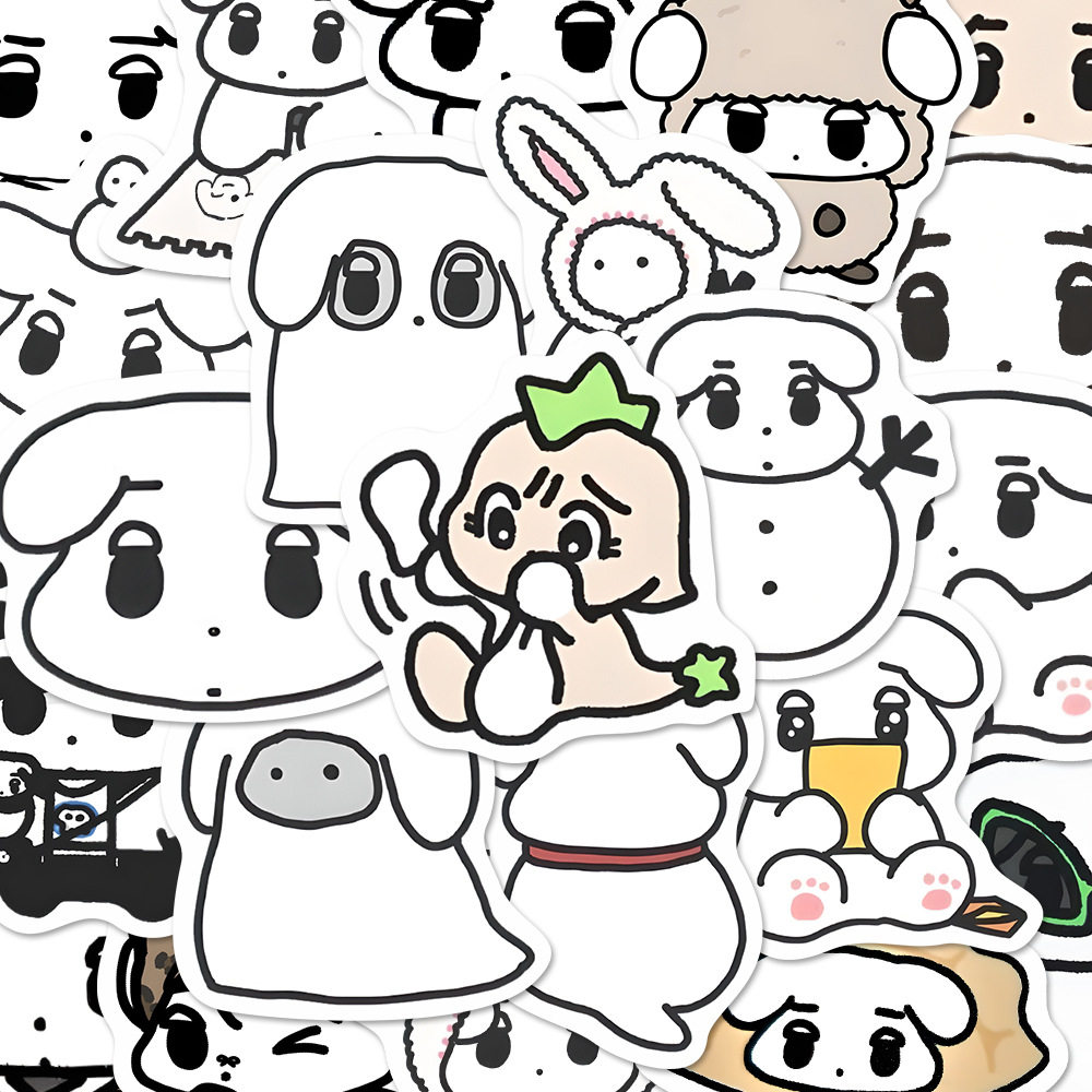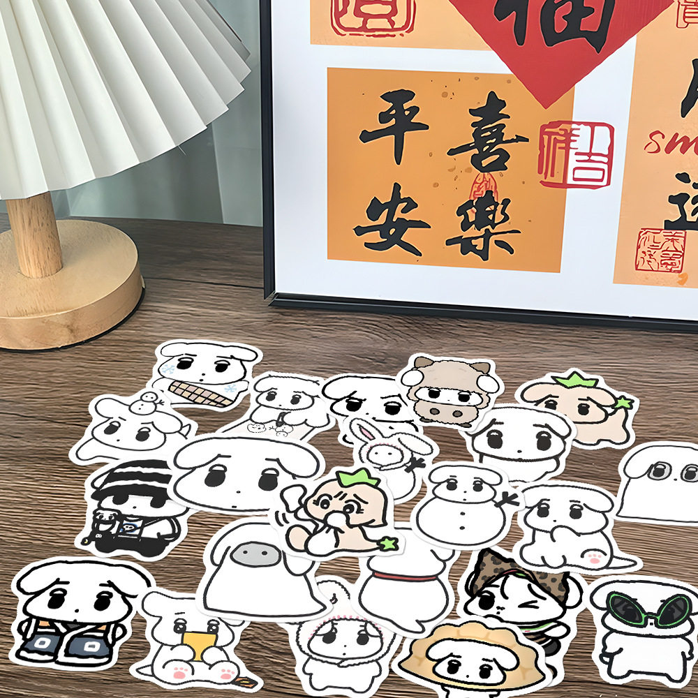 108张线条小狗贴纸卡通可爱防水手账装饰diy手机壳手账笔记本素材