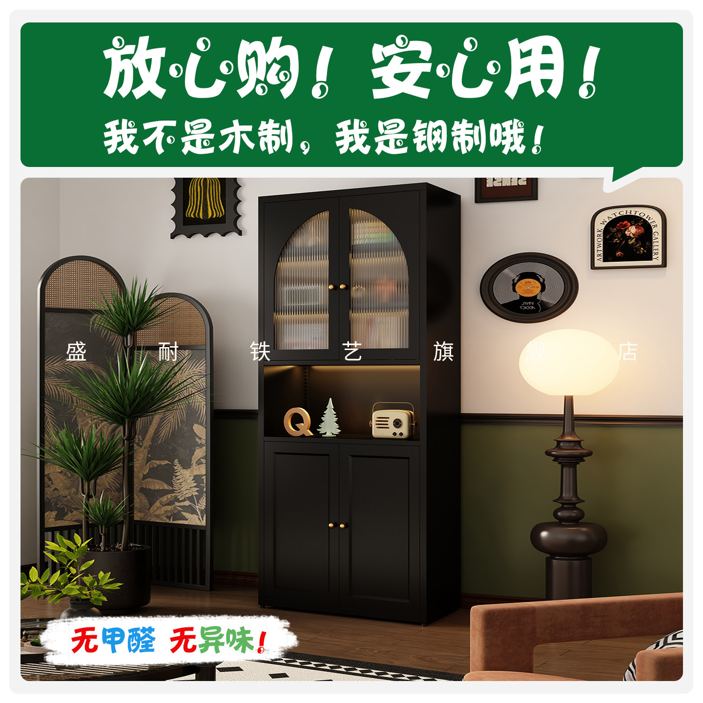 法式复古拱形书柜钢制家用客厅书架满墙落地组合展示柜储物柜酒柜